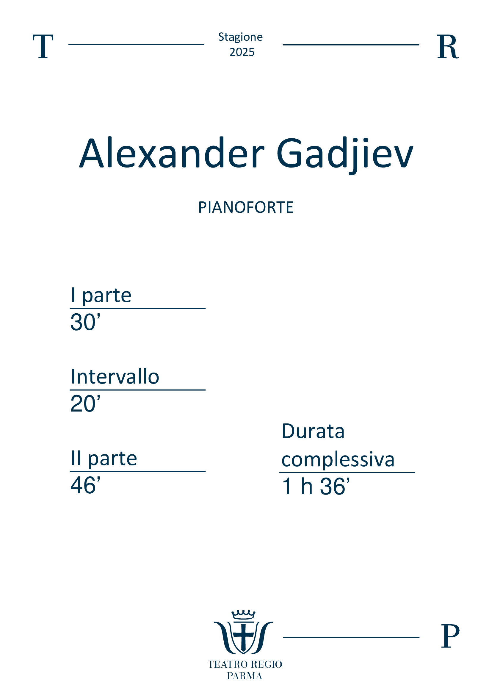 La Stagione del Teatro Regio di Parma è realizzata grazie al contributo di Comune di Parma, Ministero della Cultura, Reggio Parma Festival, Regione Emilia-Romagna. Major partner Fondazione Cariparma. Main partner Chiesi. Cultural partner Crédit Agricole. Media partner Mediaset. Main sponsor Iren, Barilla. Sponsor Agugiaro e Figna, CePIM, Grasselli, Parmacotto, Opem, GHC, Poliambulatorio Dalla Rosa Prati, Drill Pac, Rainieri, GloveICT, Amoretti. Security partner Metronotte. Educational partner Parmalat. Wine partner Oinoe. Mobility partner Tep. Radio Ufficiale Radio Monte Carlo. Fair Play partner Zebre. Con il contributo di Ascom Confcommercio Parma Fondazione, Ascom Parma Confcommercio, Camera di Commercio dell’Emilia, Fondazione Monteparma. Legal counselling Villa&Partners. Con il supporto di “Parma, io ci sto!”. Sostenitori tecnici De Simoni, Teamwork, Graphital. Partner artistici e istituzionali Casa della Musica, Coro del Teatro Regio di Parma, Conservatorio “Arrigo Boito”, Società dei Concerti di Parma, Fondazione Teatro Comunale di Bologna, La Toscanini. La Stagione Concertistica del Teatro Regio di Parma è realizzata dalla Società dei Concerti di Parma grazie al supporto di Comune di Parma, Regione Emilia-Romagna, Ministero della Cultura, Sinapsi Group, Chiesi Group. Il Teatro Regio di Parma aderisce a Fedora, Opera Europa, Operavision, Emilia taste, nature, culture.