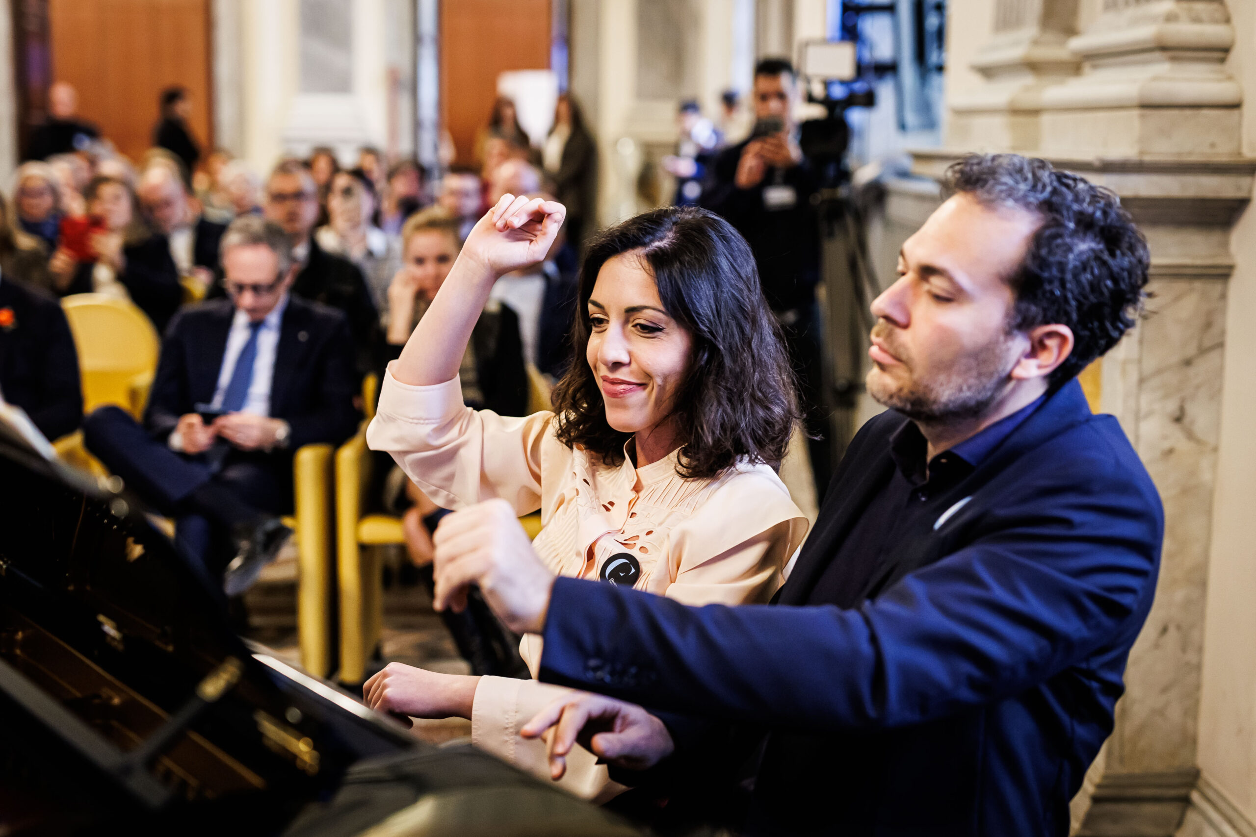 L’appuntamento di presentazione, aperto al pubblico e alla stampa, si è concluso con la suite di Maurice Ravel Ma mère l’oye per pianoforte a quattro mani, interpretata da Beatrice Rana e Massimo Spada.