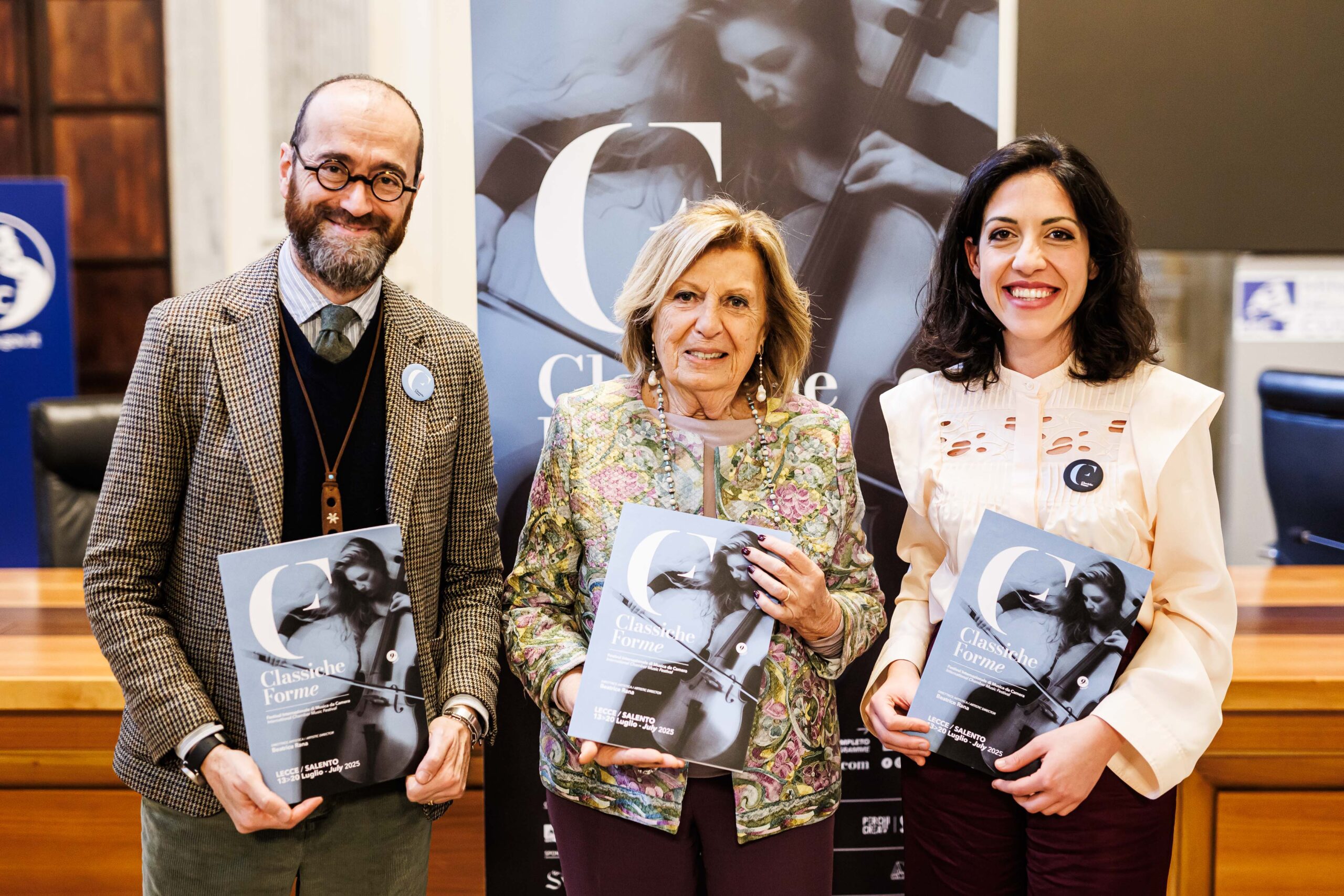 La presentazione si è tenuta nella Sala Spadolini del Ministero della Cultura. Dopo i saluti istituzionali di Gianmarco Mazzi, sottosegretario di Stato alla Cultura, insieme alla direttrice artistica del festival Beatrice Rana sono intervenuti, quindi: Roberto Marti, senatore della Repubblica, Presidente della 7ª Commissione permanente (Cultura e patrimonio culturale, istruzione pubblica), Aldo Patruno, direttore generale del Turismo e della Cultura della Regione Puglia, Adriana Poli Bortone, sindaco di Lecce, e Riccardo Panfili, compositore autore della Commisione Classiche Forme 2025.