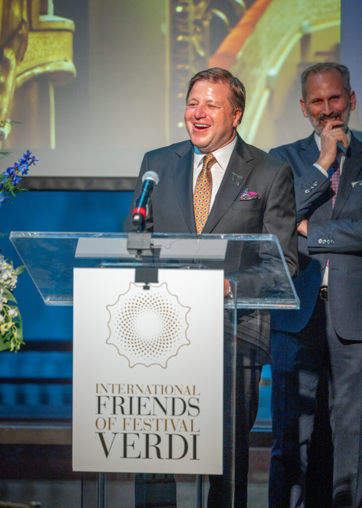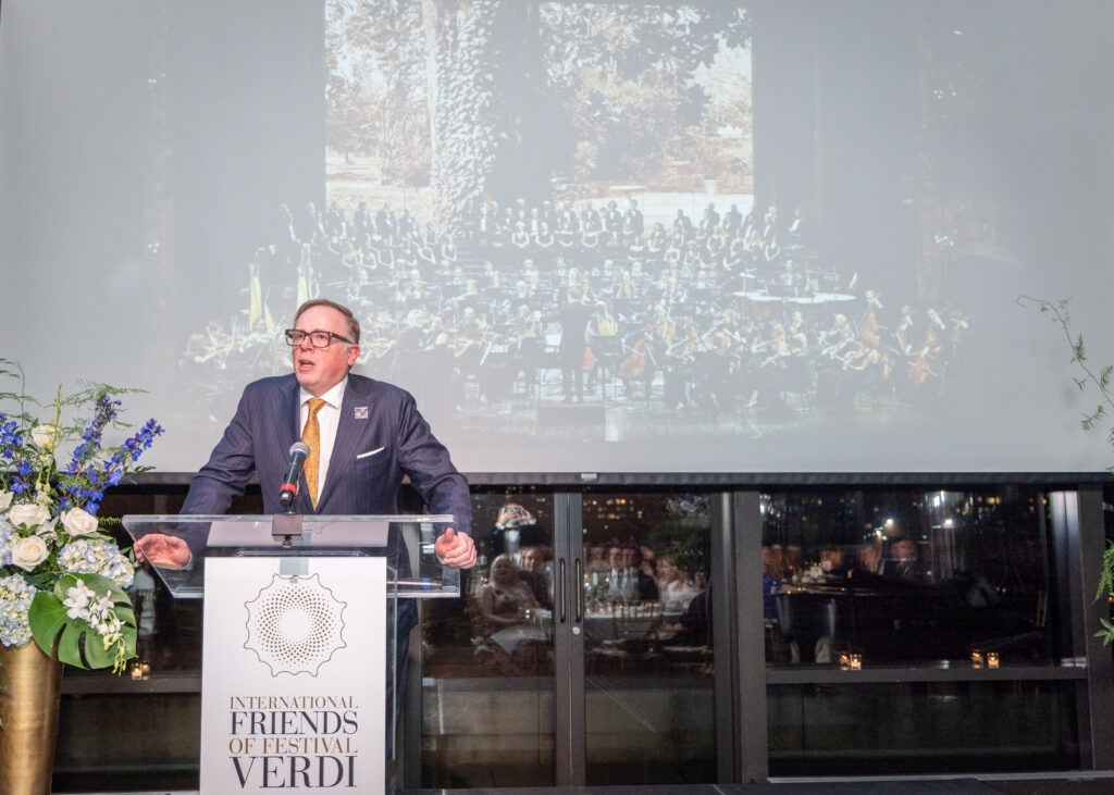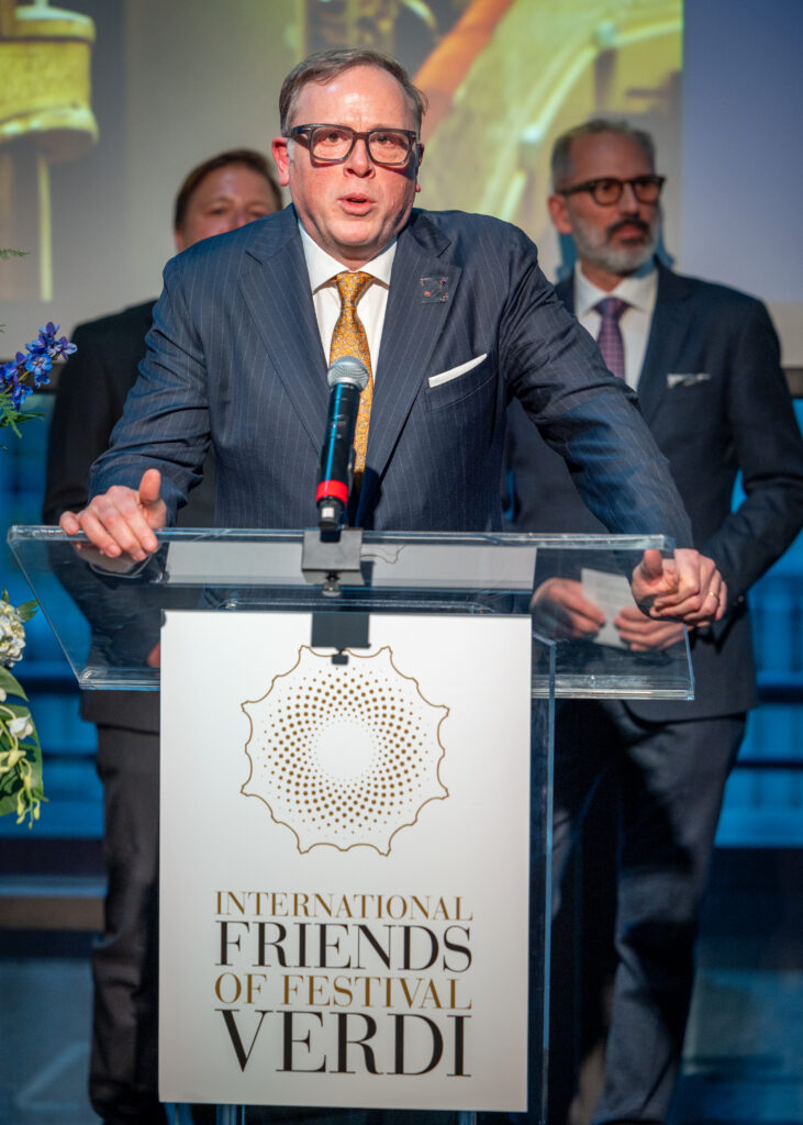 “La gloriosa musica di Giuseppe Verdi risuona in tutto il mondo e continua ad avere un profondo impatto su di noi – ha dichiarato James E. Miller, Presidente degli International Friends of Festival Verdi. Stasera ci siamo riuniti per garantire che il suo genio continui a vivere, sostenendo le iniziative innovative intraprese sia sul palco del Teatro Regio di Parma sia fuori dal Teatro. Siamo onorati di raccogliere fondi per il Festival Verdi, Verdi Off e le sue importanti iniziative culturali. Ringrazio tutti gli ospiti della loro presenza al Gala e per il generoso sostegno attraverso i loro contributi, donazioni e la partecipazione all’asta silenziosa”.