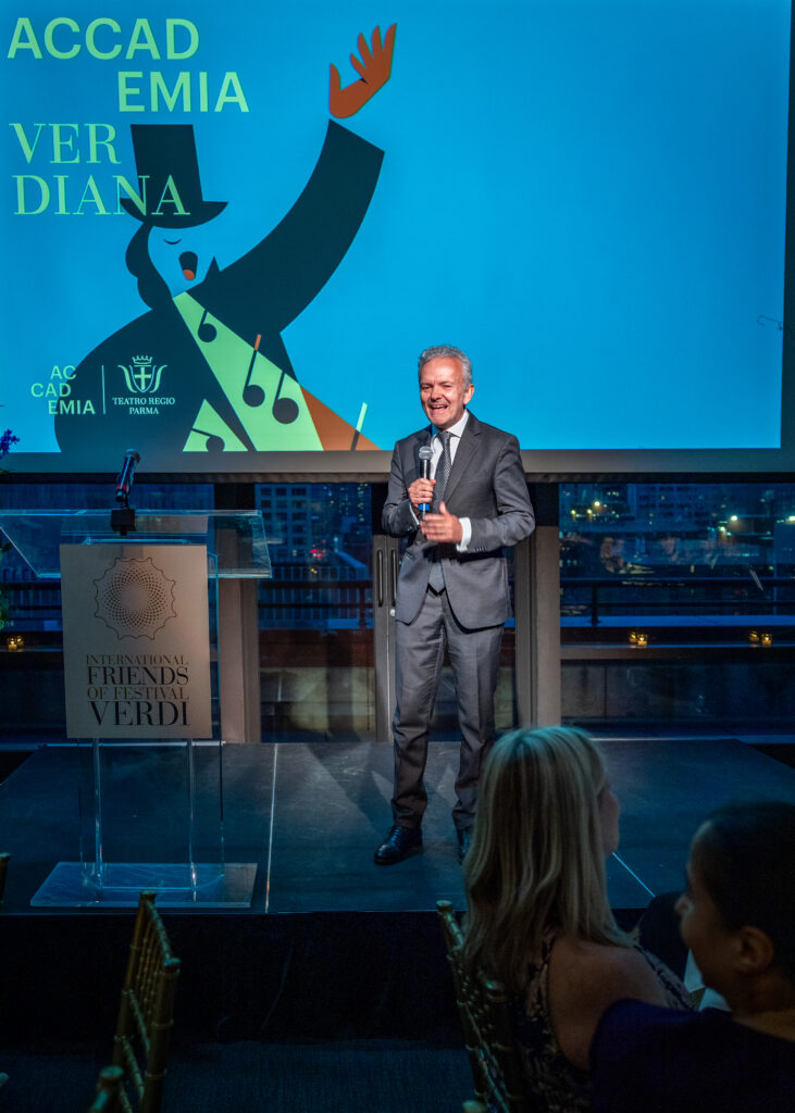 “Siamo profondamente grati per la presenza di così numerosi e prestigiosi ospiti a questo evento speciale e onorati di celebrare gli International Friends of Festival Verdi – sottolineano Michele Guerra ,Sindaco di Parma e Presidente della Fondazione Teatro Regio, e Luciano Messi, Sovrintendente. Stasera abbiamo rafforzato le relazioni tra Parma, l’Emilia-Romagna e gli Stati Uniti, grazie ai profondi legami che condividiamo. Promuovere le relazioni internazionali è essenziale per arricchire le nostre tradizioni artistiche e consolidare il nostro senso di appartenenza a una comunità più ampia. Funge da potente catalizzatore per promuovere l’eccellenza artistica e l’innovazione, nonché per condividere una parte significativa della nostra identità culturale. Il programma del Festival Verdi e del Verdi Off, che celebrano il loro 25° e 10° anniversario, incarna anche questi valori.