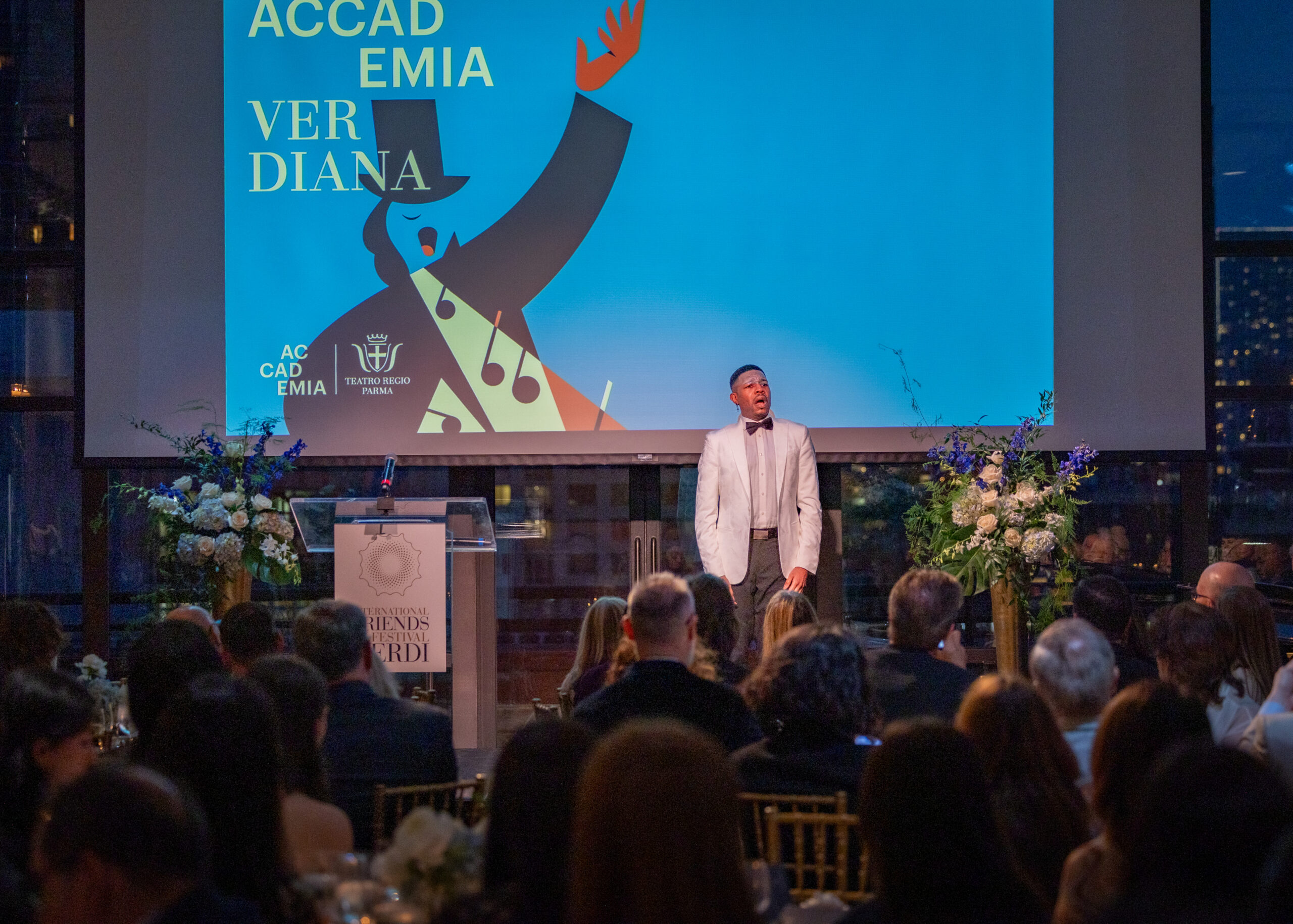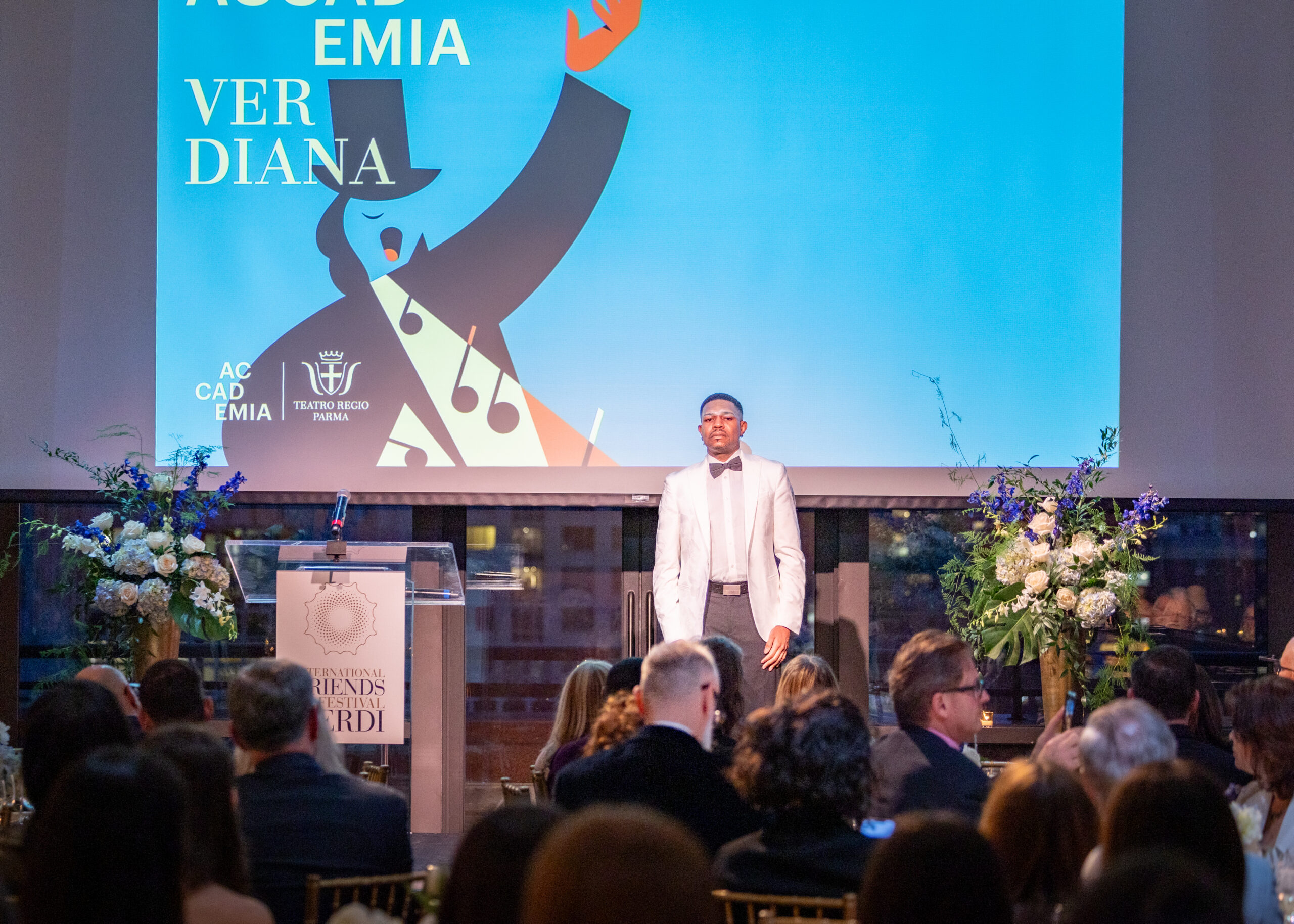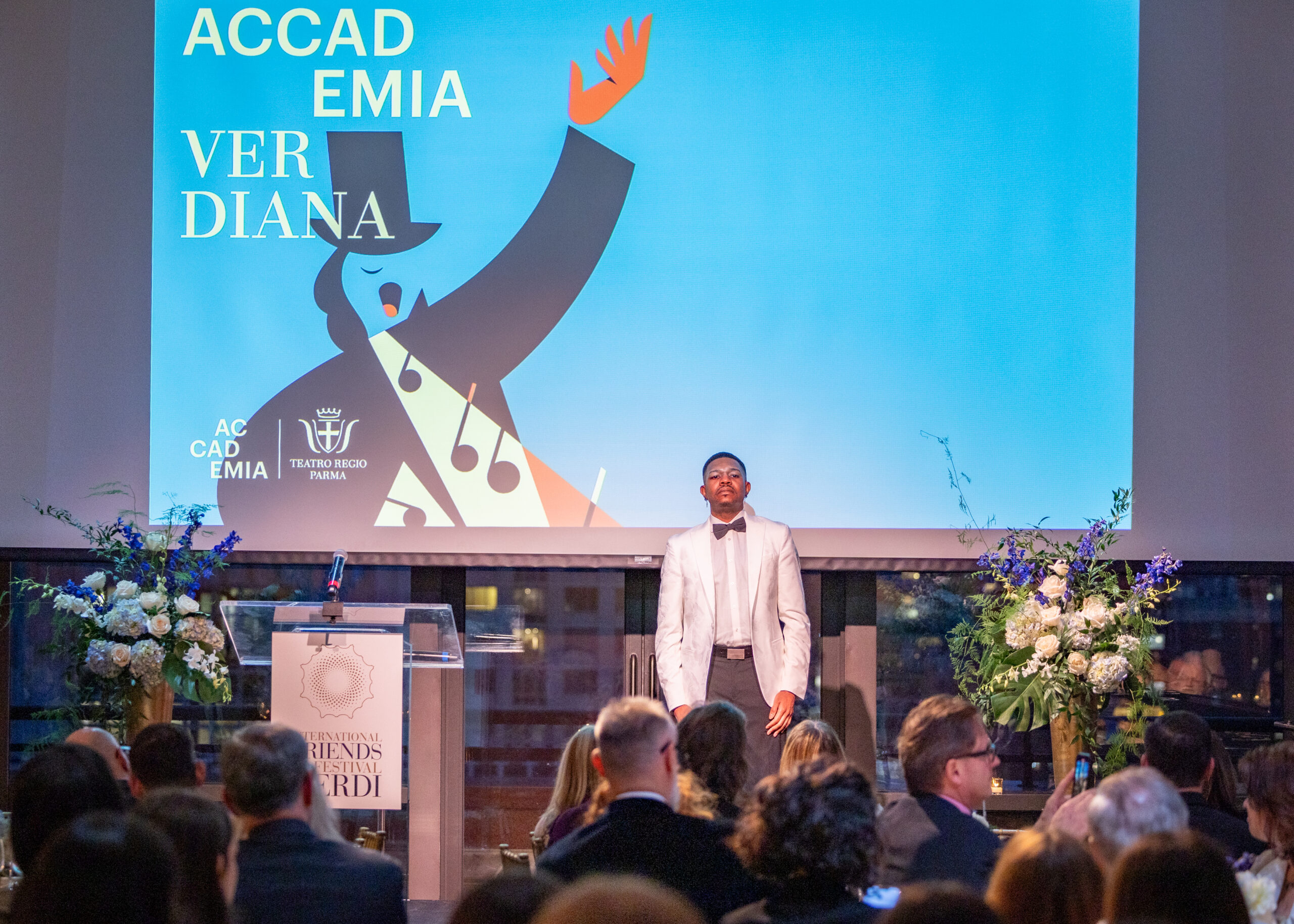 L’IFFV Spring Gala si è aperto alle ore 18.00 con il Parma Food Valley Aperitivo a cui è seguito il tributo verdiano del basso Edwin Jhamaal Davis, tra gli allievi della prima edizione di Accademia Verdiana in New York, che accompagnato al pianoforte da Francesco Izzo ha interpretato “Ella giammai m’amò” da Don Carlo. Accademia Verdiana in New York è il corso di alta formazione intensivo e gratuito per 10 giovani cantanti lirici, la cui prima edizione si è tenuta lo scorso mese di gennaio e che rinnoverà il suo percorso anche il prossimo anno, realizzato dal Teatro Regio di Parma, con il supporto di International Friends of Festival Verdi, Casa Italiana Zerilli-Marimò, Fondazione Prof. Roberto Massini ETS, diretto da Francesco Izzo con masterclass di rinomati interpreti e studiosi verdiani.
