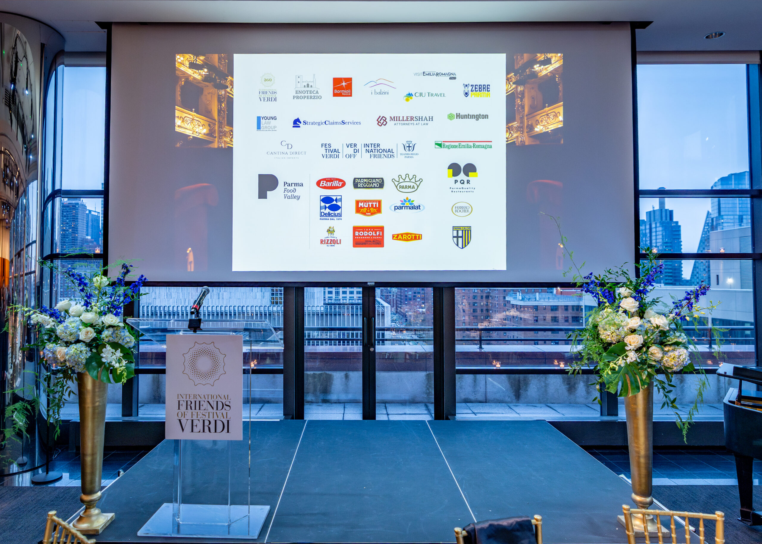 Al Lincoln Center Plaza, nello Stanley H. Kaplan Penthouse Samuel B. & David Rose Building, gli oltre 150 ospiti, personalità della finanza, dell’editoria e dell’imprenditoria statunitense – tra cui alcuni dei più importanti corrispondenti dei media internazionali – parteciperanno alla serata di fundraising realizzata dagli International Friends of Festival Verdi, con il sostegno di Miller Shah, Strategic Claims Services, Huntington, Young Law Group, CIU Travel, nel corso della quale potranno degustare il menù ideato e preparato a cura di Nicole Zerbini e Filippo Cavalli, Chef Ambassadors di Parma Quality Restaurants.