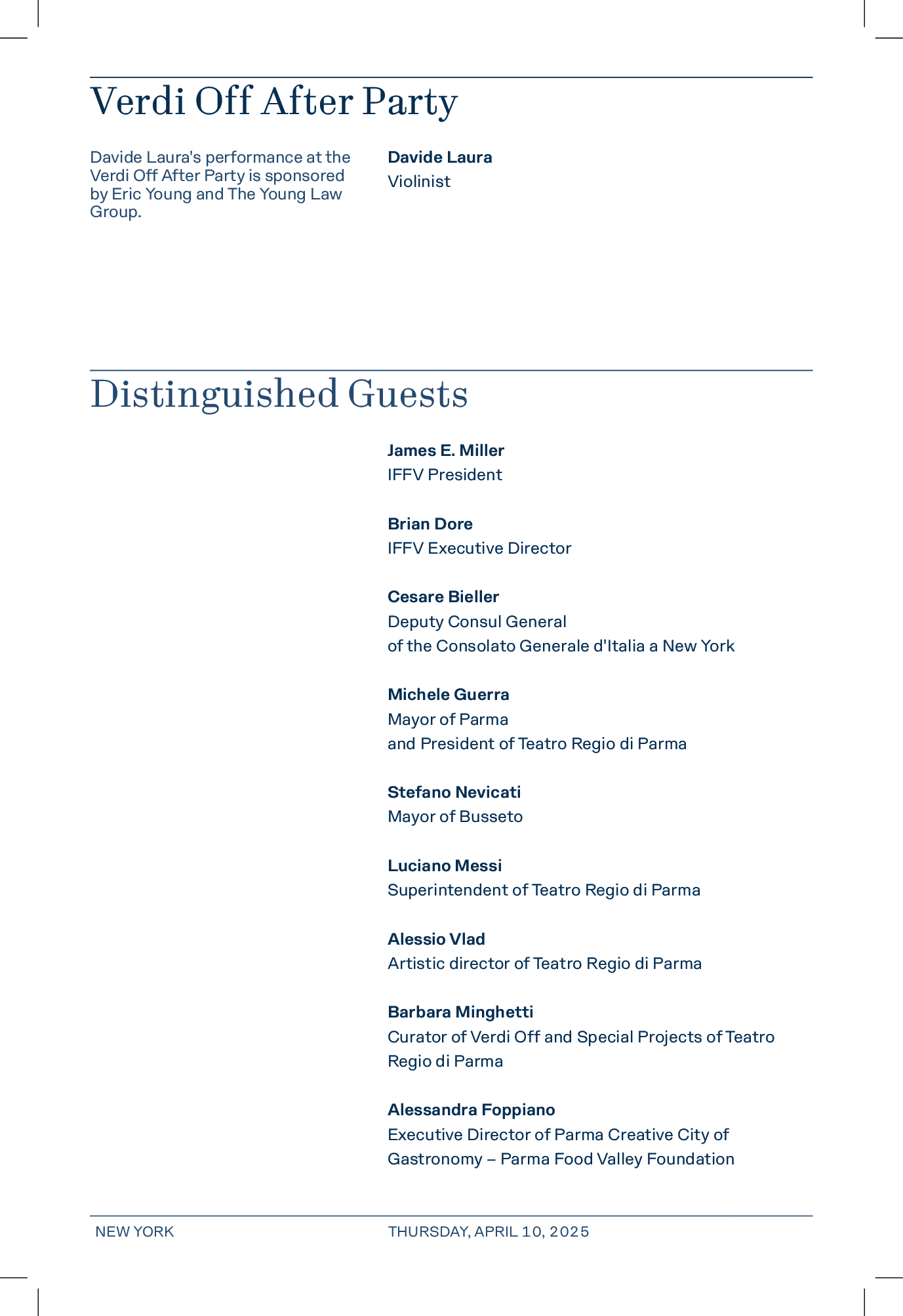 L’IFFV Spring Gala si concluderà nello spirito di Verdi Off con un After Party che vedrà protagonista il violinista Davide Laura.