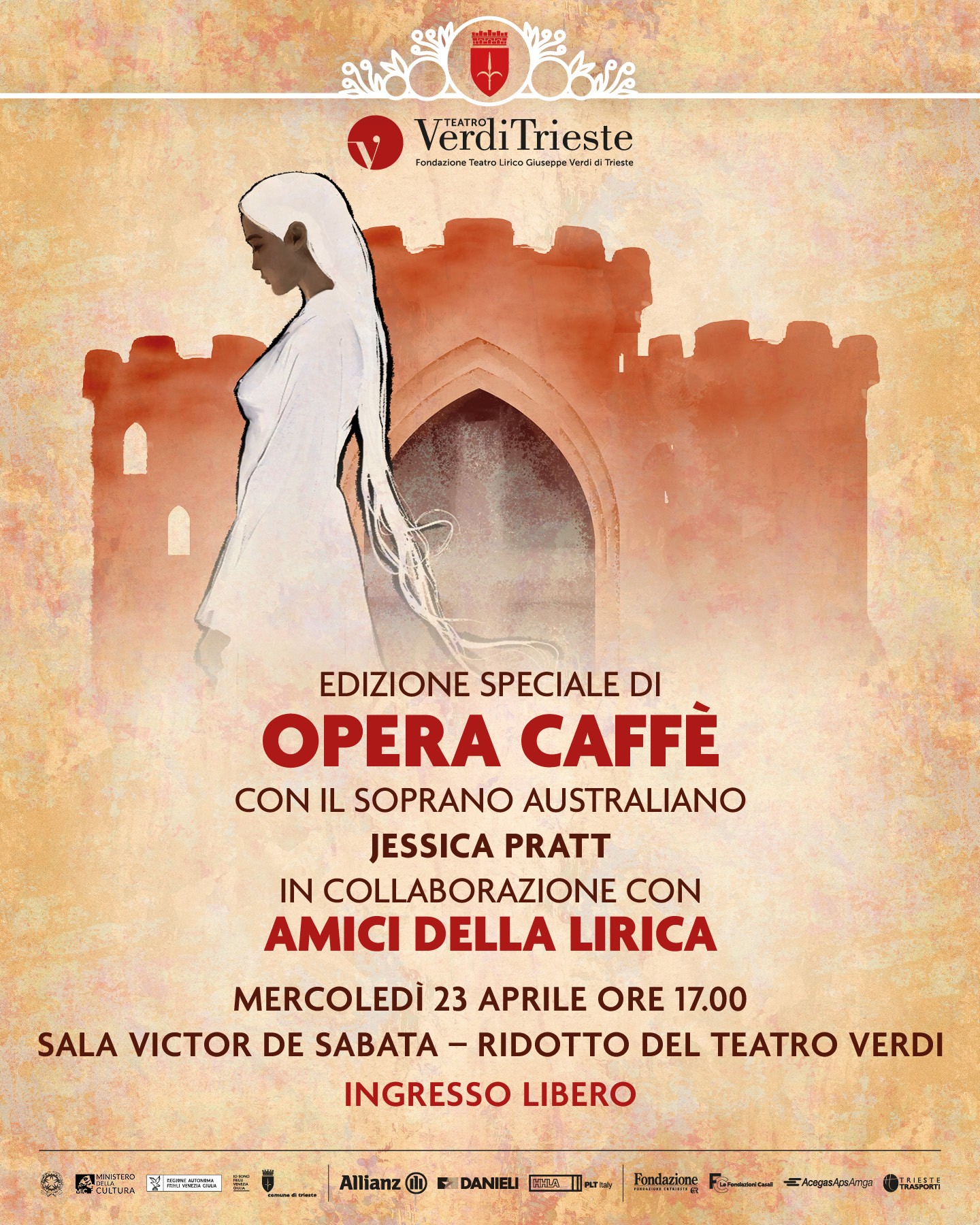 In occasione della programmazione al Teatro Verdi della Lucia di Lammermoor di Gaetano Donizetti, l’Associazione Triestina Amici della Lirica Giulio Viozzi in collaborazione con il Teatro Lirico G. Verdi di Trieste organizza un’edizione speciale dell’Opera Caffè: mercoledì 23 aprile 2025, alle ore 17.00 presso la Sala Victor de Sabata – Ridotto del Teatro Giuseppe Verdi di Trieste. Un’occasione unica e straordinaria per conoscere la protagonista del capolavoro del compositore bergamasco: il soprano australiano Jessica Pratt. Una “chiacchierata” amichevole e informale per incontrare una grande artista di caratura internazionale che, dopo una lunga carriera coronata di continui successi, arriva finalmente anche a Trieste. Si parlerà della sua vita, di argomenti musicali, artistici e altre curiosità. L’incontro sarà curato da Elisabetta d’Erme e Oscar Cecchi