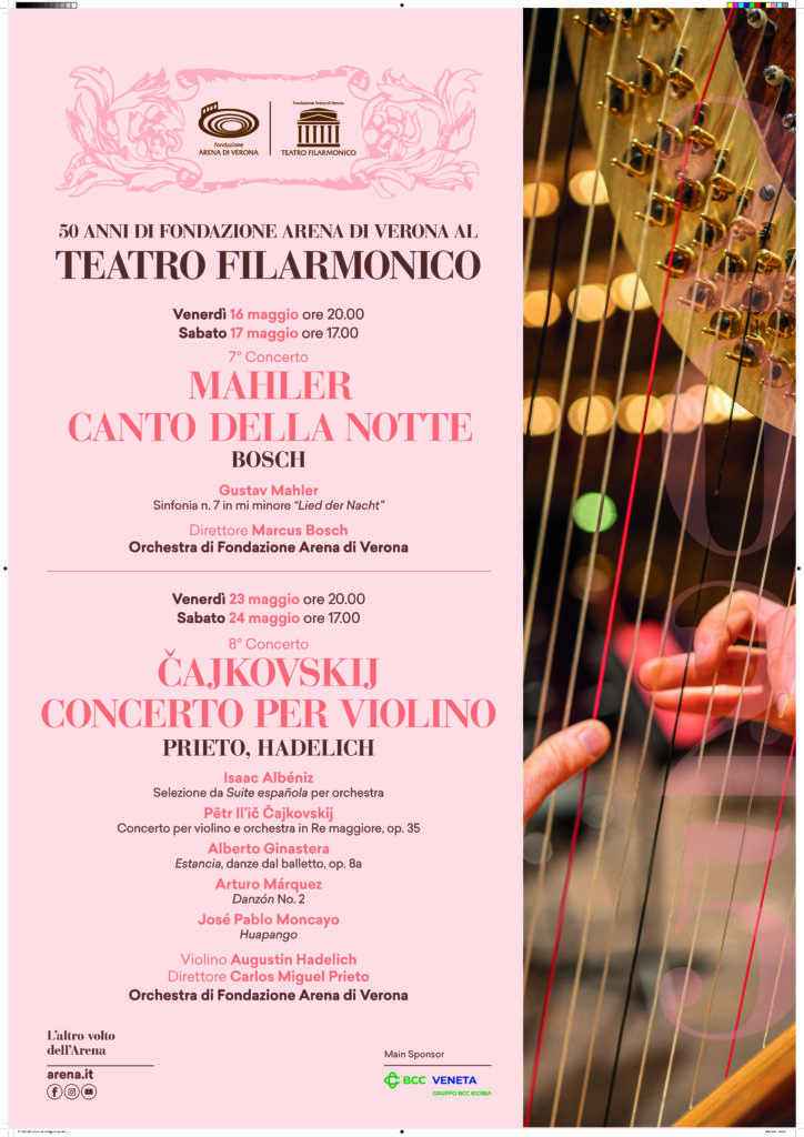 Prosegue il maggio sinfonico di Fondazione Arena di Verona al Teatro Filarmonico, con grandi interpreti della scena internazionale e una ricca programmazione: per la prima volta l’orchestra areniana eseguirà la complessa e avvincente Settima sinfonia di Mahler, detta Lied der Nacht (Canto della notte) venerdì 16 maggio alle 20, con replica sabato 17 maggio alle 17. Quasi cento i professori schierati dall’Orchestra di Fondazione Arena, diretti da Marcus Bosch, apprezzato direttore già applaudito a Verona in passato in importanti produzioni d’opera e sinfoniche, come la prima esecuzione in epoca recente di Tristan und Isolde di Wagner al Teatro Filarmonico.