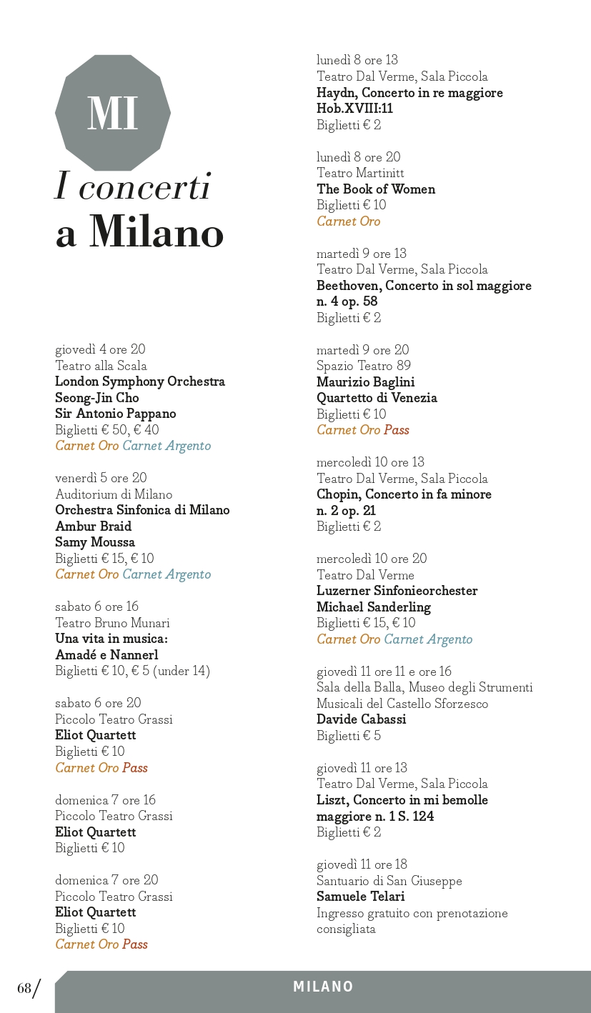 concerti a Milano > da euro 2 a euro 50