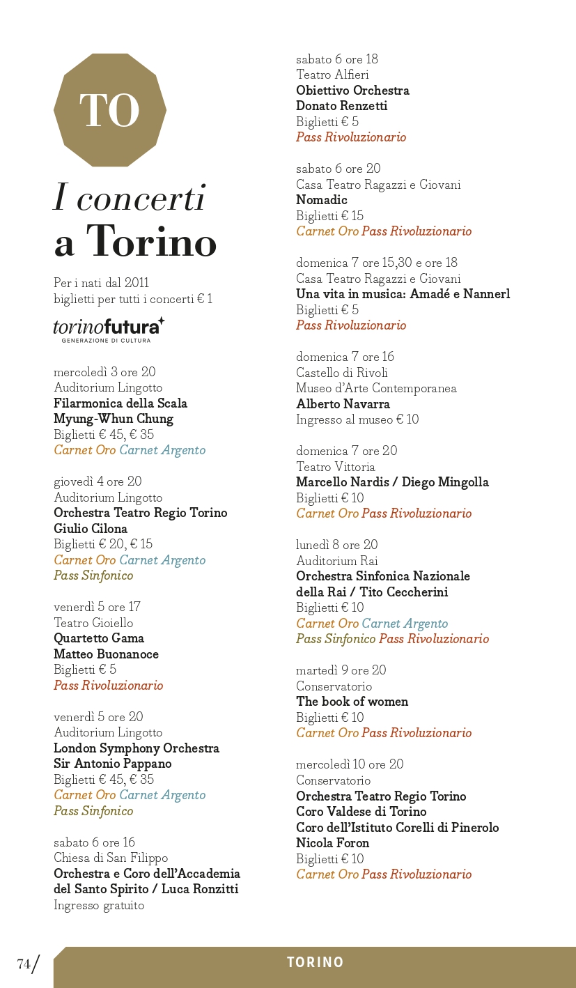 concerti a Torino > da euro 1 a euro 45