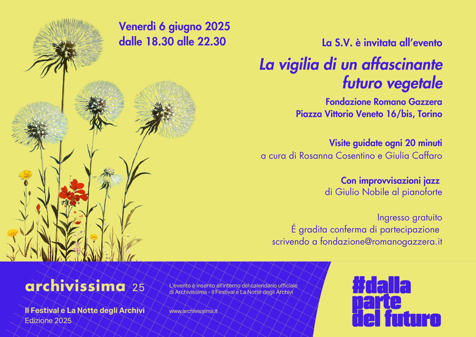 Si apre nel segno dei futuri possibili l’edizione 2025 di Archivissima, il festival che ogni anno invita a riscoprire il valore degli archivi come luoghi di memoria e ispirazione. E proprio alla Notte degli Archivi, cuore pulsante della manifestazione, la Fondazione Romano Gazzera partecipa ancora una volta con un contributo dal forte impatto visionario: un omaggio al pittore che, ben prima del nostro tempo, seppe immaginare un mondo governato dai fiori.