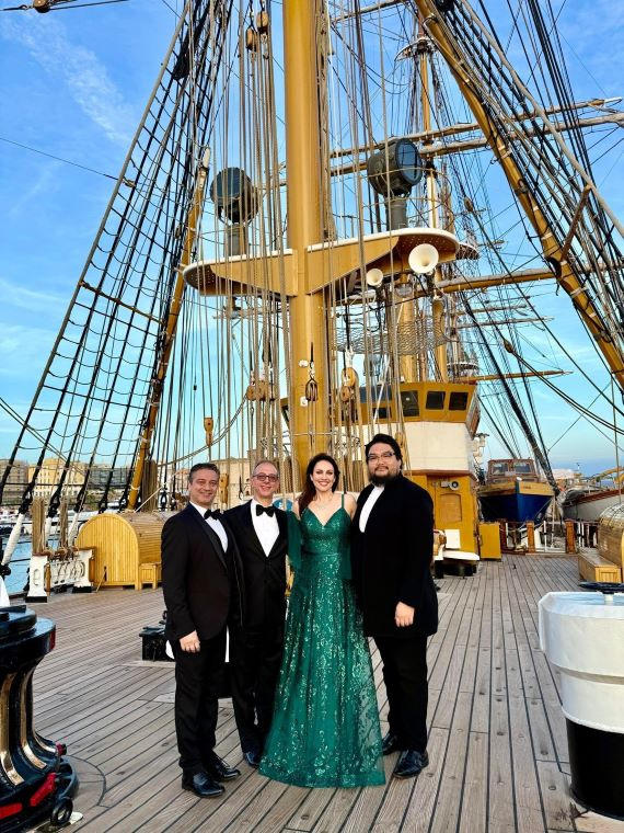 sull’Amerigo Vespucci: Paolo Lardizzone, Federico Brunello, Sara Cortolezzis e Youngjun Park
