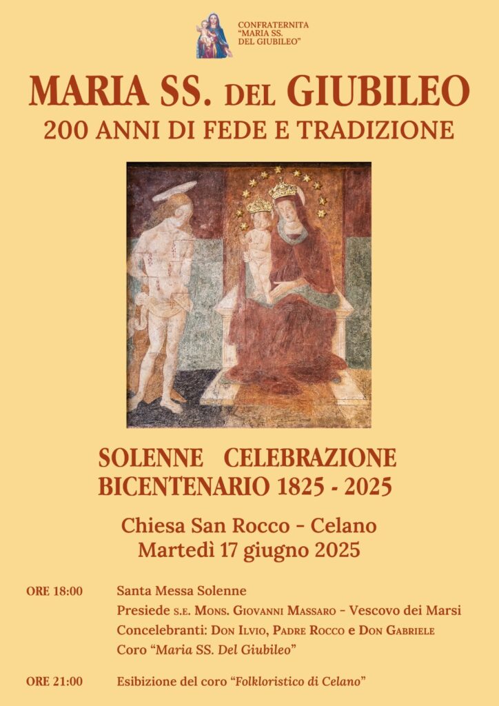 Celano, 2025 – Il prossimo 17 giugno, Celano celebrerà il bicentenario di un evento che ha segnato profondamente la sua storia spirituale e culturale: il rinvenimento del dipinto di Maria Santissima del Giubileo, scoperto nel 1825 durante i lavori di restauro nella chiesa di San Rocco, proprio nell’anno del Giubileo indetto da papa Leone XII. Un fatto straordinario che suscitò grande devozione nella popolazione e portò, alla costituzione della Confraternita di Maria SS. del Giubileo. Per commemorare la ricorrenza, il Priore Sante Del Corvo, insieme ai confratelli, ha promosso un programma liturgico e culturale aperto alla cittadinanza: