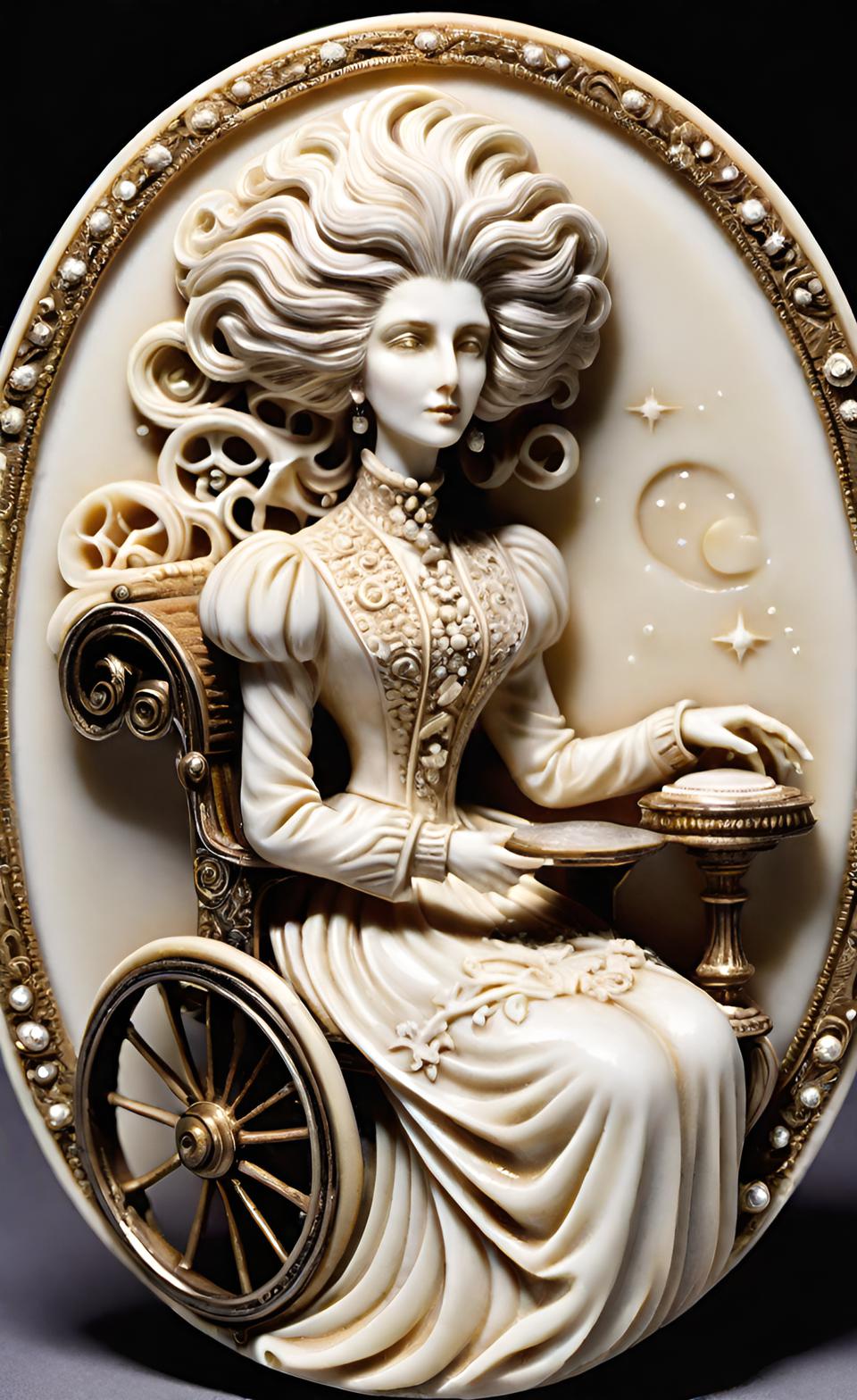 La dama del camafeo, invitada por mi pensamiento, cobra vida y habla. Su voz es una modulación taciturna, el eco de una existencia de amarga paciencia: