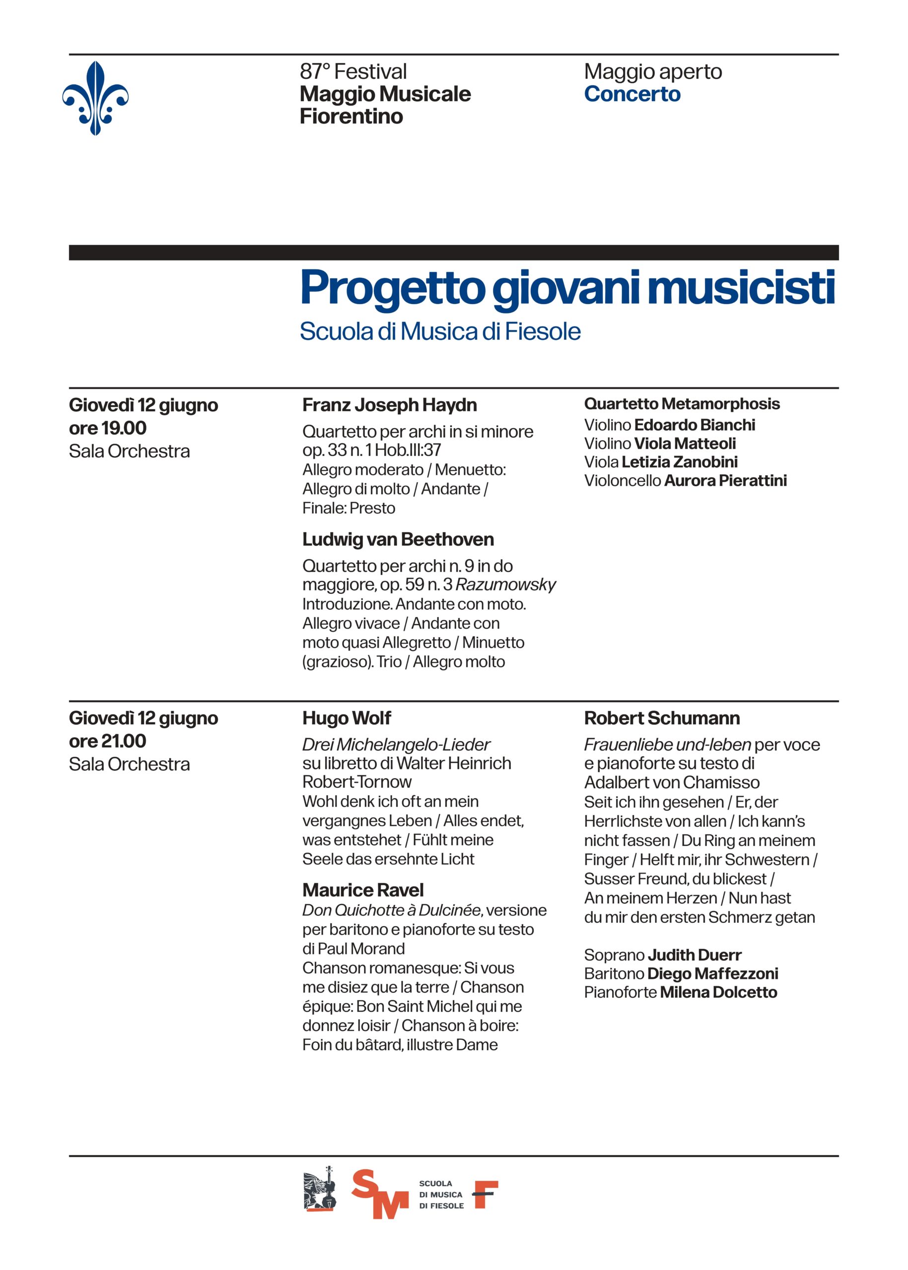 Firenze, 11 giugno 2025 – Si rinnova, con un doppio e brioso appuntamento sinfonico, la collaborazione fra il Teatro del Maggio Musicale Fiorentino e la Scuola di Musica di Fiesole. La serata s’inserisce nel ciclo del Maggio Aperto, gli spettacoli inclusi nell’ambito dell’87°Festival del Maggio Musicale Fiorentino che avvicinano il Teatro e il suo Festival al mondo delle variegate realtà musicali del territorio fiorentino.