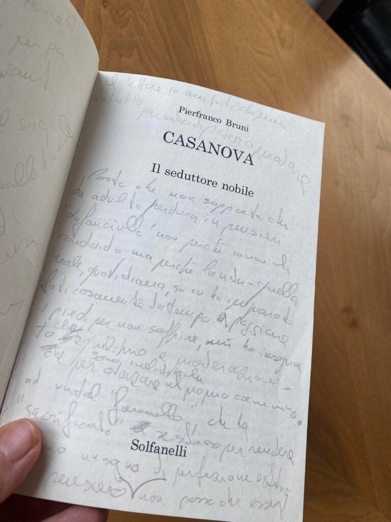 Così, dopo averlo ‘conosciuto’ un pochino in più dalle pagine del libro di Bruni, questa è la domanda che più mi è rimasta netta nella mente: «Nella sua ansia struggente di bellezza e di vita, cercava forse Dio, Casanova, nella Donna?»