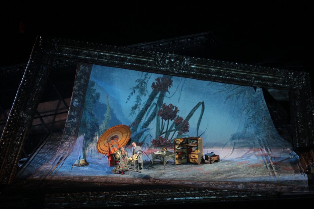 La Traviata, nell’edizione creata da Hugo De Ana per il Festival 2011, Anniversario dell’Unità d’Italia, inizia come la fonte letteraria di Verdi: come nella Signora delle camelie, realmente esistita e raccontata da Alexandre Dumas figlio, si vede ciò che resta di Violetta, le ultime cose all’asta. Solo dopo, a ritroso, come in un sogno o un lungo flashback, conosciamo lei, il suo mondo, la sua storia. Le cornici vuote, colossali strutture finemente decorate di fine ‘800, prendono vita e si popolano di balli e feste. E se, per regia, costume e colpo d’occhio, la “fedeltà al libretto” è assicurata, gli elementi scenici sono anche altamente simbolici: specchi, arazzi e cornici inquadrano i diversi atti come opere d’arte, come una vicenda privata diventata mito. Quando il clamore pubblico tace e si spengono le luci, rimane lei, Violetta, al centro di tutto, nella sua parabola di amore e sacrificio.