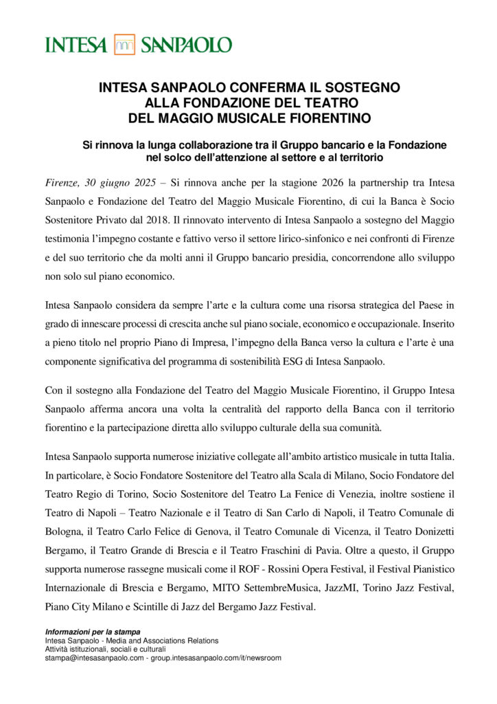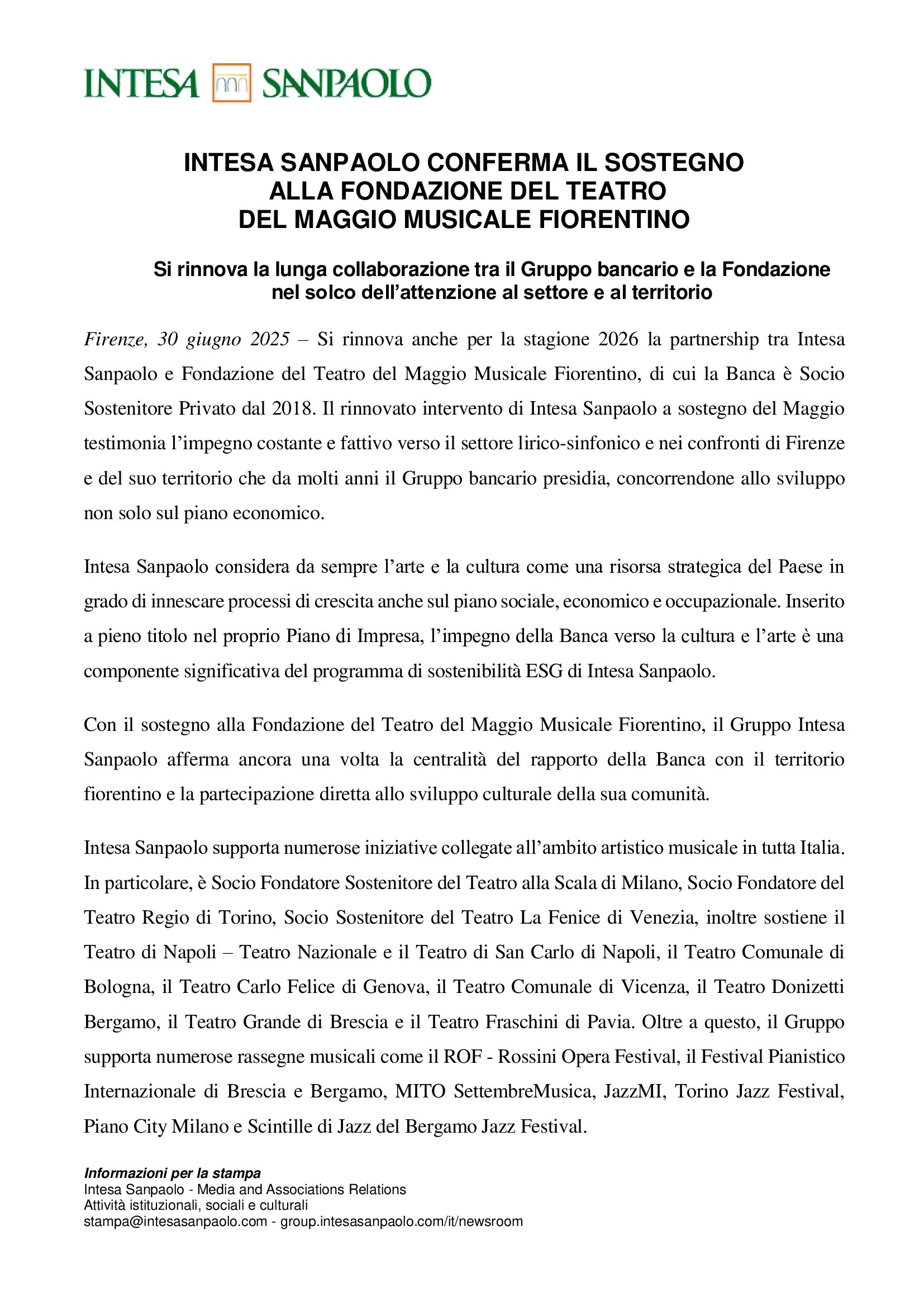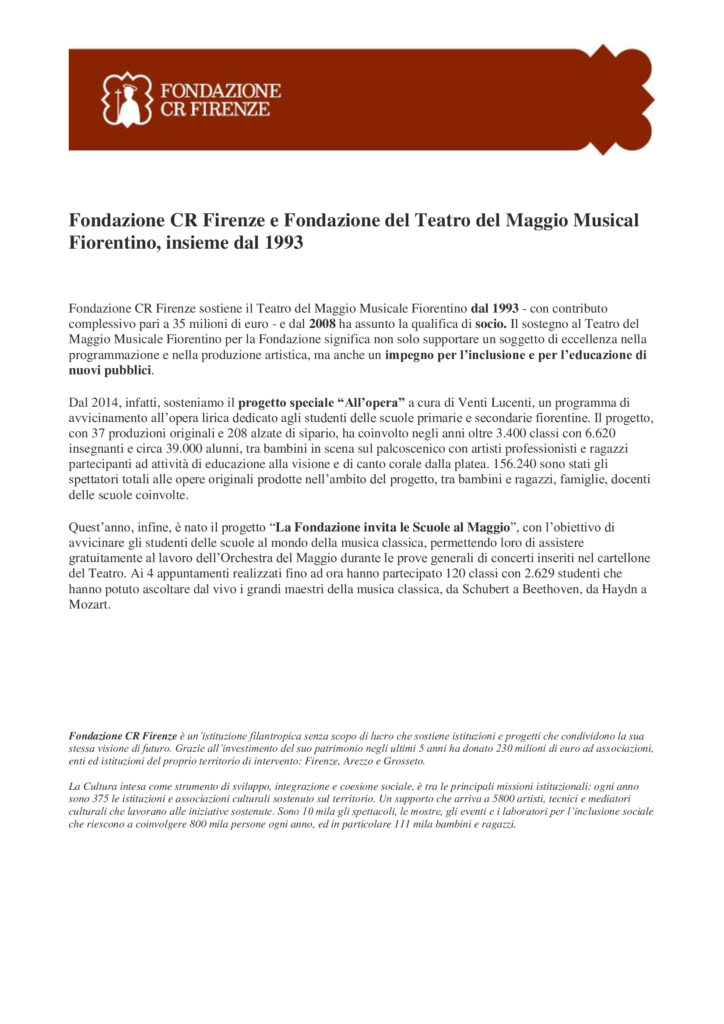 La Fondazione Teatro del Maggio Musicale Fiorentino ringrazia altrettanto i Soci privati: Fondazione CR Firenze, Intesa Sanpaolo.