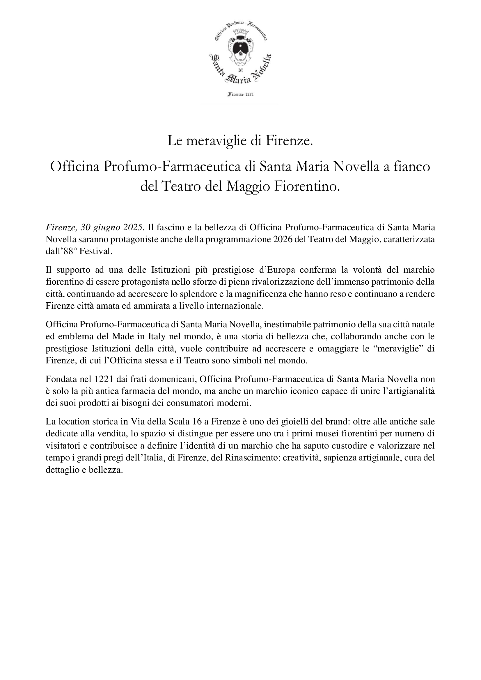 Firenze, 30 giugno 2026 – Il Teatro del Maggio Musicale Fiorentino annuncia la prossima stagione 2026 e l’88esima edizione del Festival Maggio Musicale: dodici titoli d’opera – in un arco temporale dal barocco al contemporaneo, con una nuova commissione – 2 cicli sinfonici diretti dal Direttore musicale Daniele Gatti, numerosi concerti sinfonici e sinfonico-corali con le numerose presenze di Zubin Mehta che nel 2026 festeggerà i suoi 90 anni, due balletti e gli spettacoli per le famiglie e le scuole.