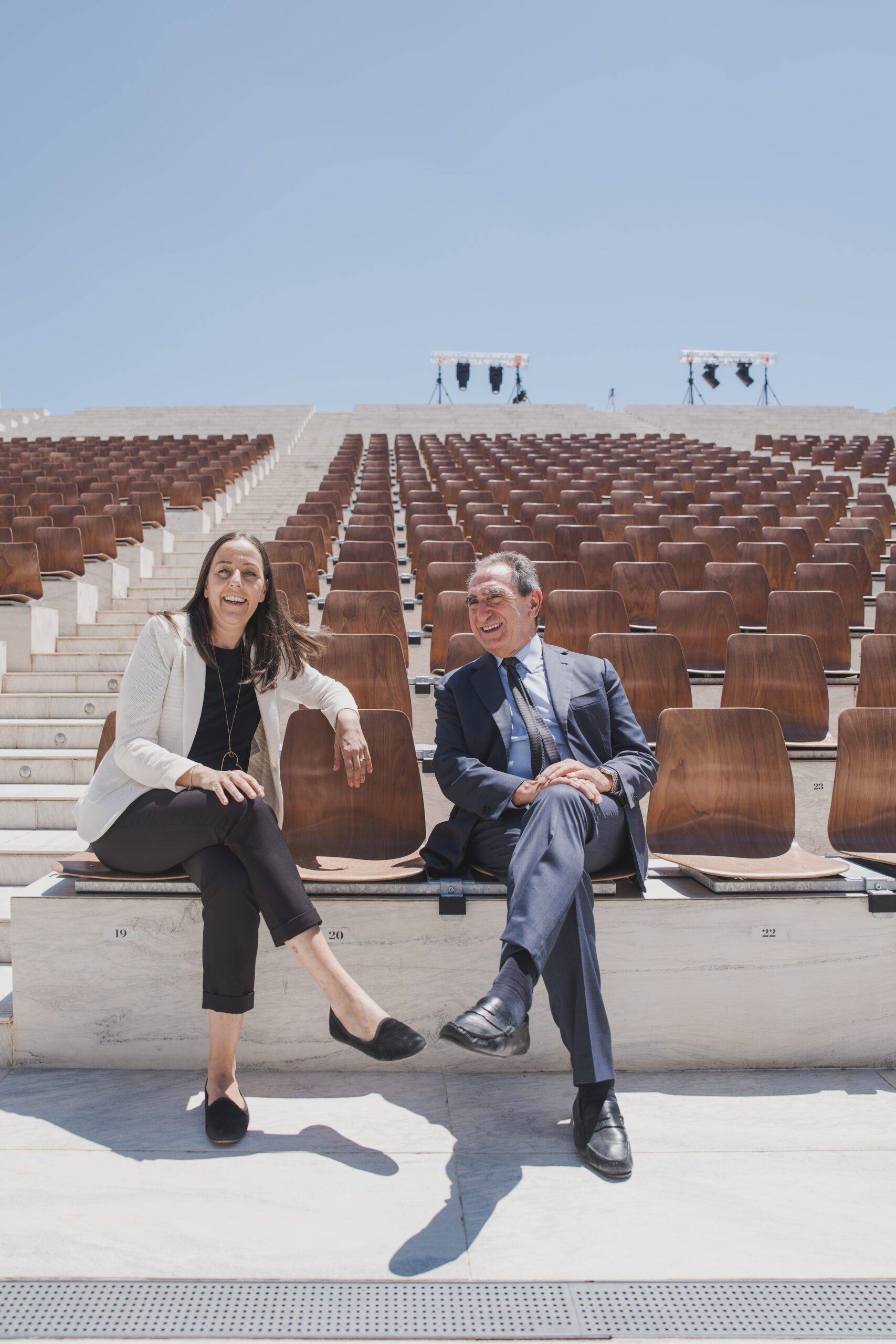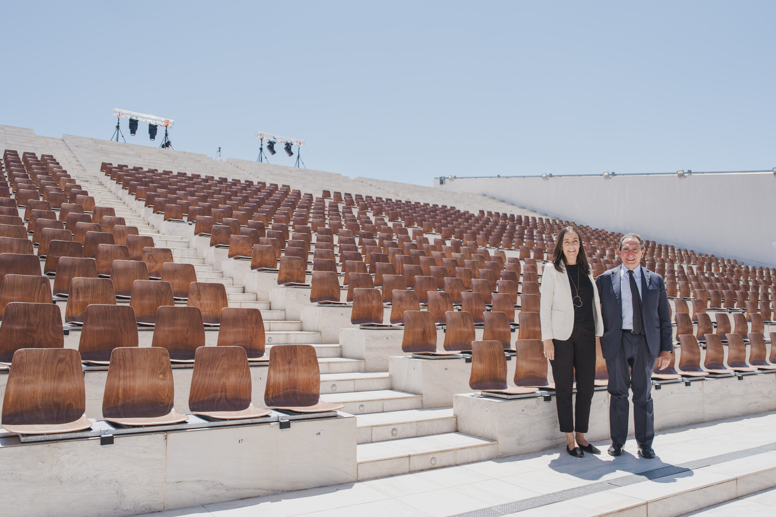 Firenze 2 luglio 2025 – La presidente della Fondazione del Maggio e Sindaca di Firenze Sara Funaro e il sovrintendente del Teatro Carlo Fuortes hanno “inaugurato” la nuova disposizione della pianta della Cavea che ora, oltre ai posti sempre disponibili in gradinata, è dotata di circa mille sedute con schienale, per offrire al pubblico una maggiore confortevolezza mentre assiste agli spettacoli.