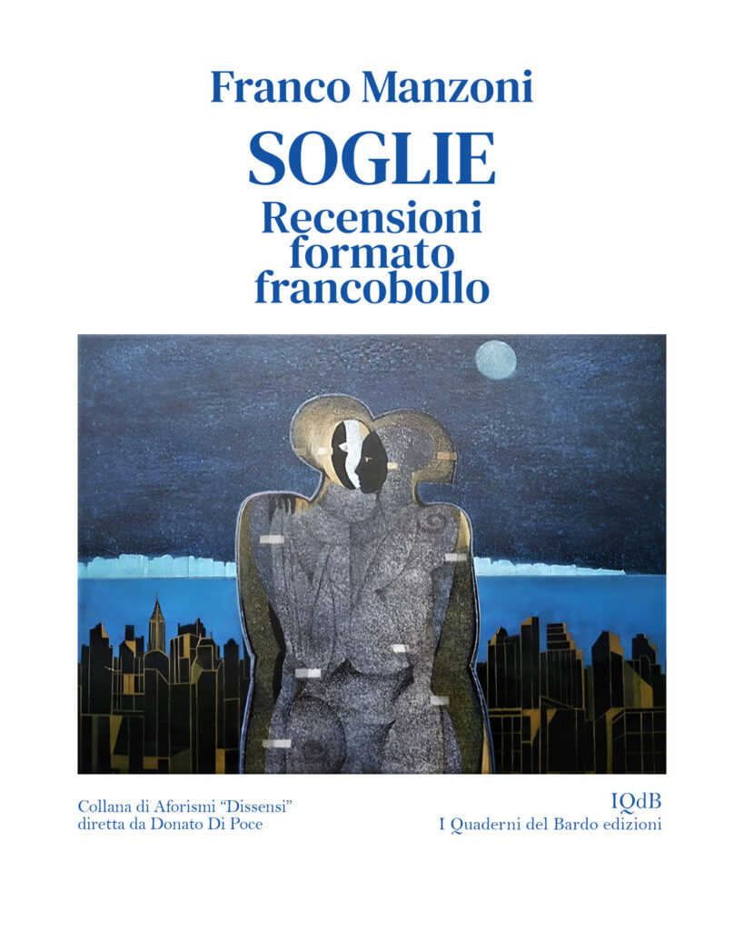 L’Autore – Franco Manzoni è nato a Milano il 3 maggio 1957. Dopo la laurea in Lettere classiche con una tesi in Storia greca, fondò nel 1984 e fu direttore responsabile della rivista di poesia e cultura Schema. Giornalista, è una firma da quarant’anni del Corriere della Sera in cronaca e in cultura. Sul domenicale la Lettura dal 2012 tiene la mini rubrica di segnalazioni critiche Soglie, confluite nel presente volume. Traduttore dal greco e dal latino, epigrafista, critico letterario, drammaturgo, docente di grammatica e letteratura dialettale milanese, è stato autore di programmi Rai, consulente della Triennale di Milano e della Società Umanitaria. Ha pubblicato numerose sillogi poetiche di rilievo nazionale e internazionale. Per sua scelta non ha mai partecipato ad alcun premio letterario