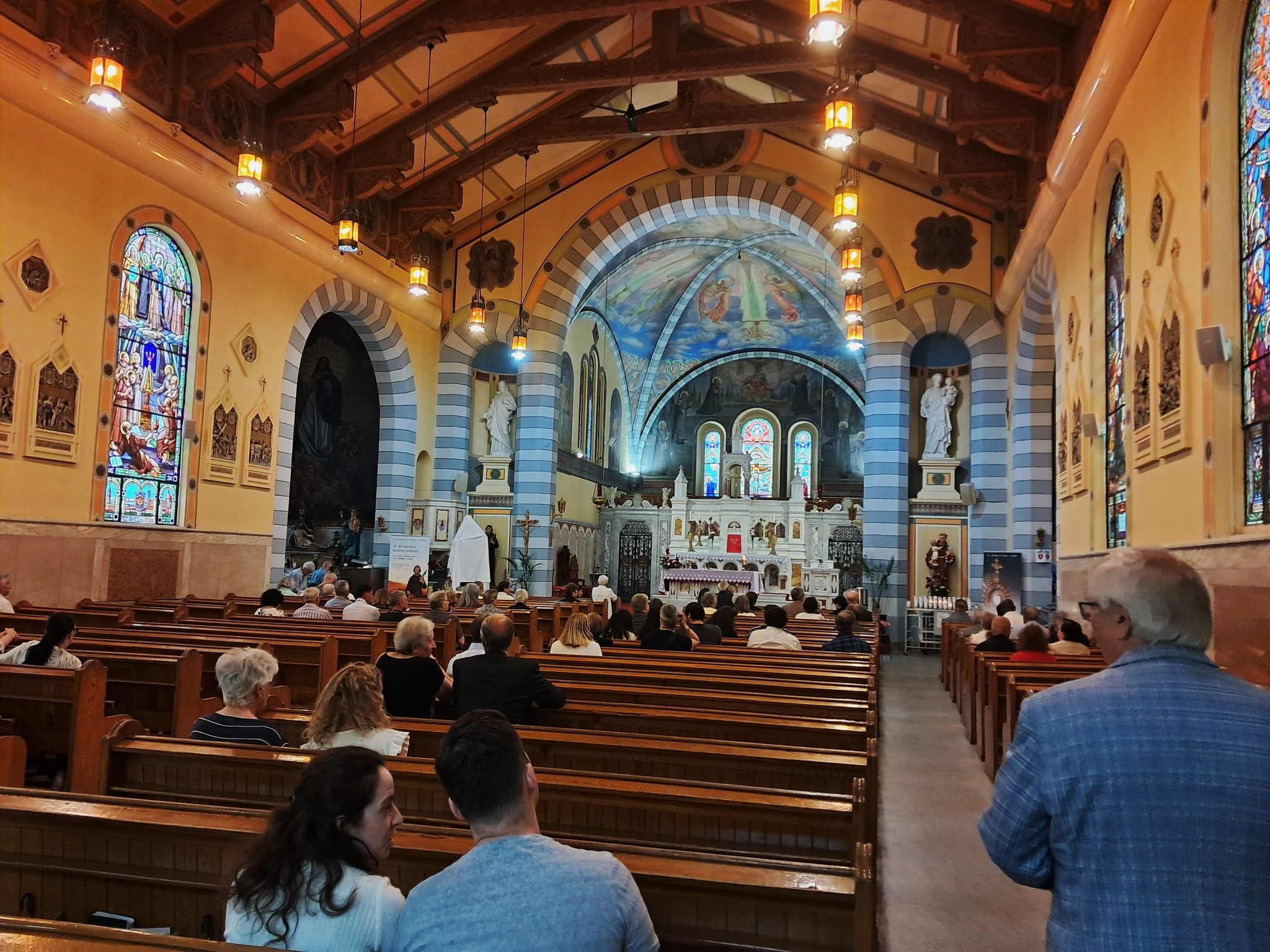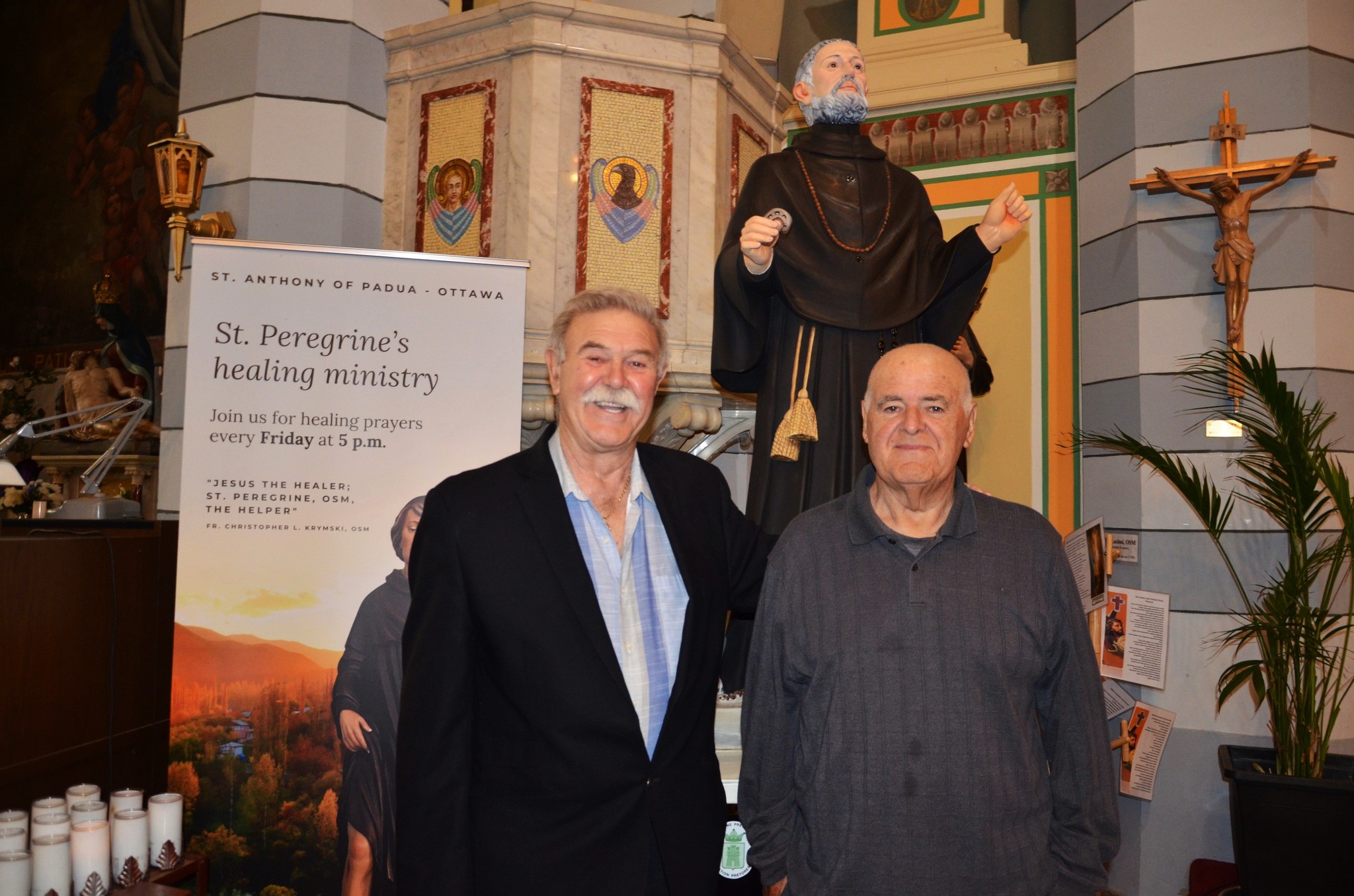 Domenica 29, con Nello Scipioni, si va alla Chiesa di Sant’Antonio, centro pastorale dedicato a Padre Jerome Ferraro (Montreal, 1919 – Ottawa, 1972), religioso dei Servi di Maria, figlio di emigrati italiani, che fu un’àncora sicura per i connazionali immigrati ad Ottawa. Dopo gli studi nel collegio dei Servi di Maria e l’ordinazione sacerdotale a 23 anni, P. Jerome fu assegnato alla Chiesa di Sant’Antonio di Ottawa, dove per 30 anni svolse un ruolo fondamentale tra gli immigrati italiani, aiutandoli a trovare un lavoro, un posto dove vivere e facilitando la soluzione dei problemi e l’integrazione nella società canadese. La chiesa, e l’annesso centro pastorale, situati nella Little Italy, sono stati un presidio di socialità e di formazione scolastica, oltre che d’assistenza per la numerosa comunità italiana di Ottawa. Un’ampia sala sotto la chiesa ricorda il religioso. Ci scendiamo dopo la Messa, , durante la quale Padre Camillo ha benedetto la statua di San Domenico abate, donata alla chiesa dalle famiglie Filoso e D’Angelo. Il sindaco Giangiulli ringrazia per l’iniziativa, che arreda la chiesa con la statua del santo patrono di Pretoro. Nella sala intitolata a Padre Jerome presentiamo il volume “Radici”, con gli interventi degli autori D. Giangiulli e F. Fanciulli, e del prefatore. Vanno a ruba le ultime copie del libro. Intanto, nella Piazza Dante che fronteggia la chiesa, la Banda dei Pompieri di Ottawa in alta uniforme, diretta dal M° Paul Casagrande, concerta musiche italiane, sia della tradizione popolare che brani d’opera, fin quando, a mezzogiorno, non esegue in sequenza gli inni nazionali, canadese e italiano. Una postazione picnic del Centro Abruzzese Canadese, con la presidente Lucia Alloggia ed altri volontari e Delio D’Angelo che cuoce alla brace arrosticini e salsicce, serve il pubblico presente. Il concerto l’ha promosso Angelo Filoso, che della Banda è grande sponsor e l’anno scorso l’ha portata in una magnifica tournée in Abruzzo e con una puntata anche a Venezia.