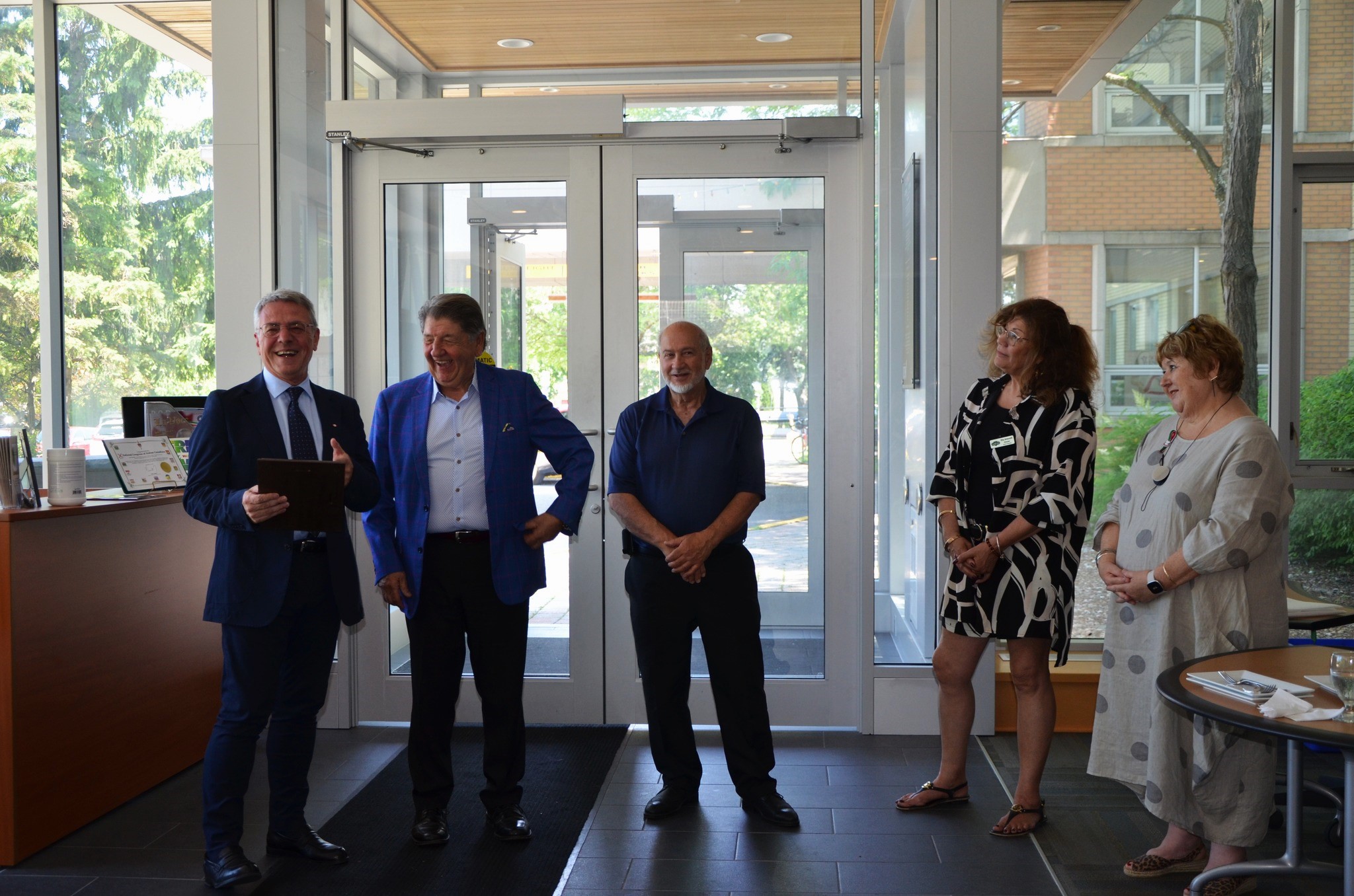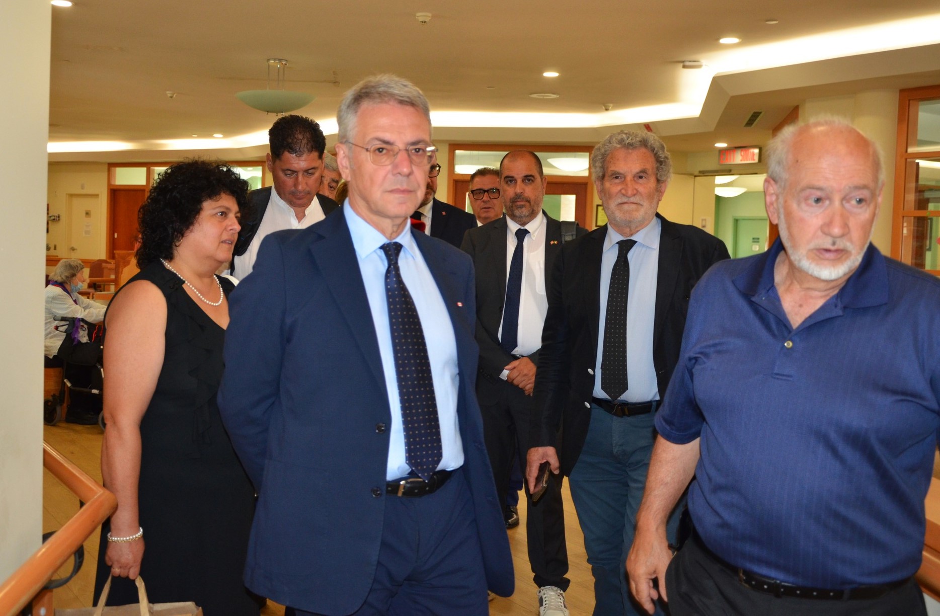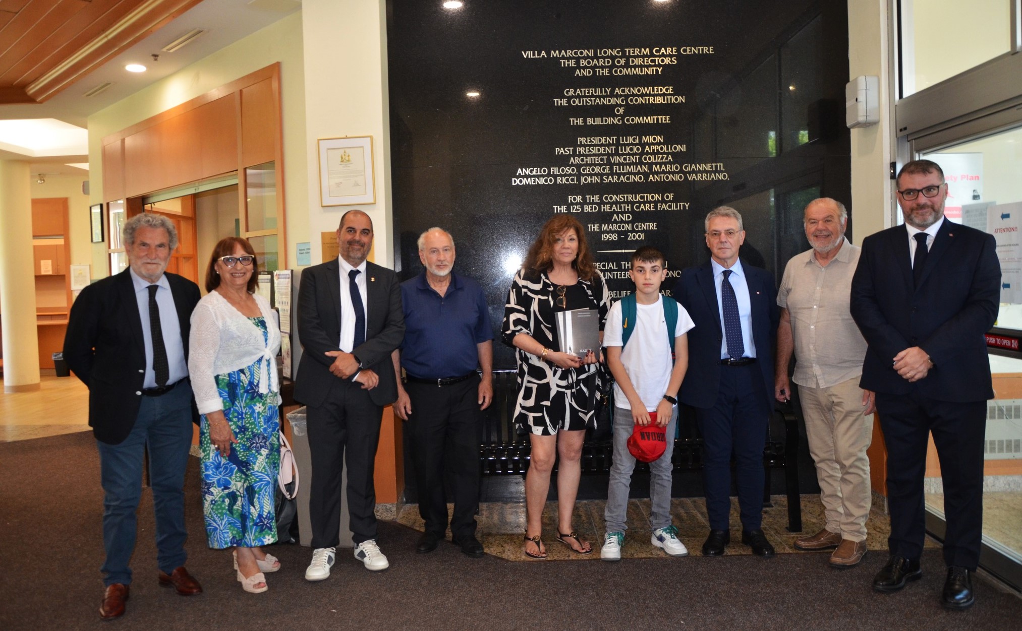 Lunedì 30 è giornata di visite ufficiali. Marcus Filoso, il figlio di Angelo, alle 10 viene a prenderci con una splendida Lincoln Continental degli anni ’50 scoperta, per portarci – i tre sindaci e chi scrive – a Villa Marconi. È uno spettacolo che non passa inosservato, la magnifica auto che percorre le strade di Ottawa e la tangenziale verso Villa Marconi. Gli altri della delegazione sono sulle auto di Angelo e di Lorenzo Ferrante. Al nostro arrivo ci accolgono il presidente Tony Mariani e i componenti del Board Rita Antonelli, Trina Costantini e Domenico Ricci che ci guida nella visita alla grande struttura residenziale, sociale e culturale, fiore all’occhiello della comunità italiana e specchio dell’attenzione verso la popolazione anziana. Razionale ed efficiente, la struttura residenziale accoglie anziani d’origine italiana, ma anche d’altra nazionalità se residuano posti disponibili. Dopo i saluti e gli scambi degli omaggi, si torna in città, verso il Municipio. Alle ore 14 i sindaci di Pretoro, Rapino e Montelapiano sono attesi dal sindaco di Ottawa, Mark Sutcliffe. La hall del Comune di Ottawa ha una sua storia particolare. Il palazzo municipale è stato costruito sul più importante incrocio di strade della vecchia città, quasi il cardo e il decumano romano, vero luogo d’incontro per gli abitanti. L’attuale hall del Comune conserva questa antica tradizione: quattro gli ingressi posizionati sulle vecchie strade, ampi spazi comunitari nella hall dove si tengono concerti, esposizioni d’arte, mostre di cimeli municipali, o semplicemente ci s’incontra.