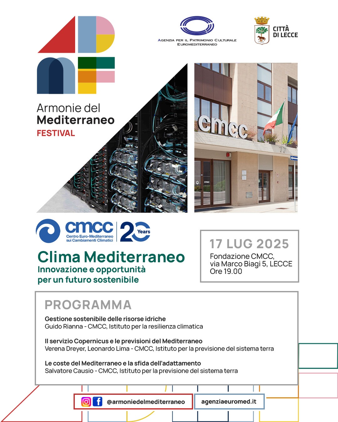www.cmcc.it|www.agenziaeuromed.it|www.comune.lecce.it|info@agenziaeuromed.it|Facebook /Instagram @armoniedelmediterraneo