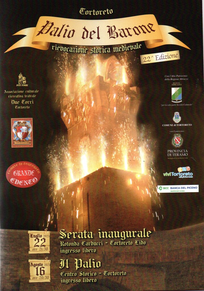 Sabato, 16 agosto, ore 20, è la serata del Palio con la sfida finale dei rioni storici Terravecchia e Terranova. Le vie del centro storico saranno animate fin dal pomeriggio da mercanti e mestieranti di un tempo, poi inizierà il maestoso corteo storico medievale con oltre 400 figuranti che indosseranno preziosissimi costumi fedelmente riprodotti da dipinti e immagini d’epoca. Una serata piena di storia, magia, fascino e attrazioni. Tante saranno le delegazioni ospiti provenienti da Marche e Abruzzo e tanti gli artisti e rievocatori tra i più gettonati in ambito nazionale e non solo, che animeranno le feste a corte arrivando dalla: Toscana, Lazio, Umbria e Marche. Sarà assegnato il Premio speciale dedicato alla memoria di “Gabriele Di Davide”, 5° edizione, al gruppo che ha contribuito con più assiduità al successo del Palio. La presentazione della serata sarà affidata al direttore artistico della manifestazione nonché attore, regista ed eclettico dicitore medievale, Fabio Di Cocco. A conclusione della rievocazione il cielo si colorerà di gioia e bellezza quando sarà inscenato “l’Incendio della Torre” eseguito da una prestigiosa ditta pirotecnica. Per la prima volta