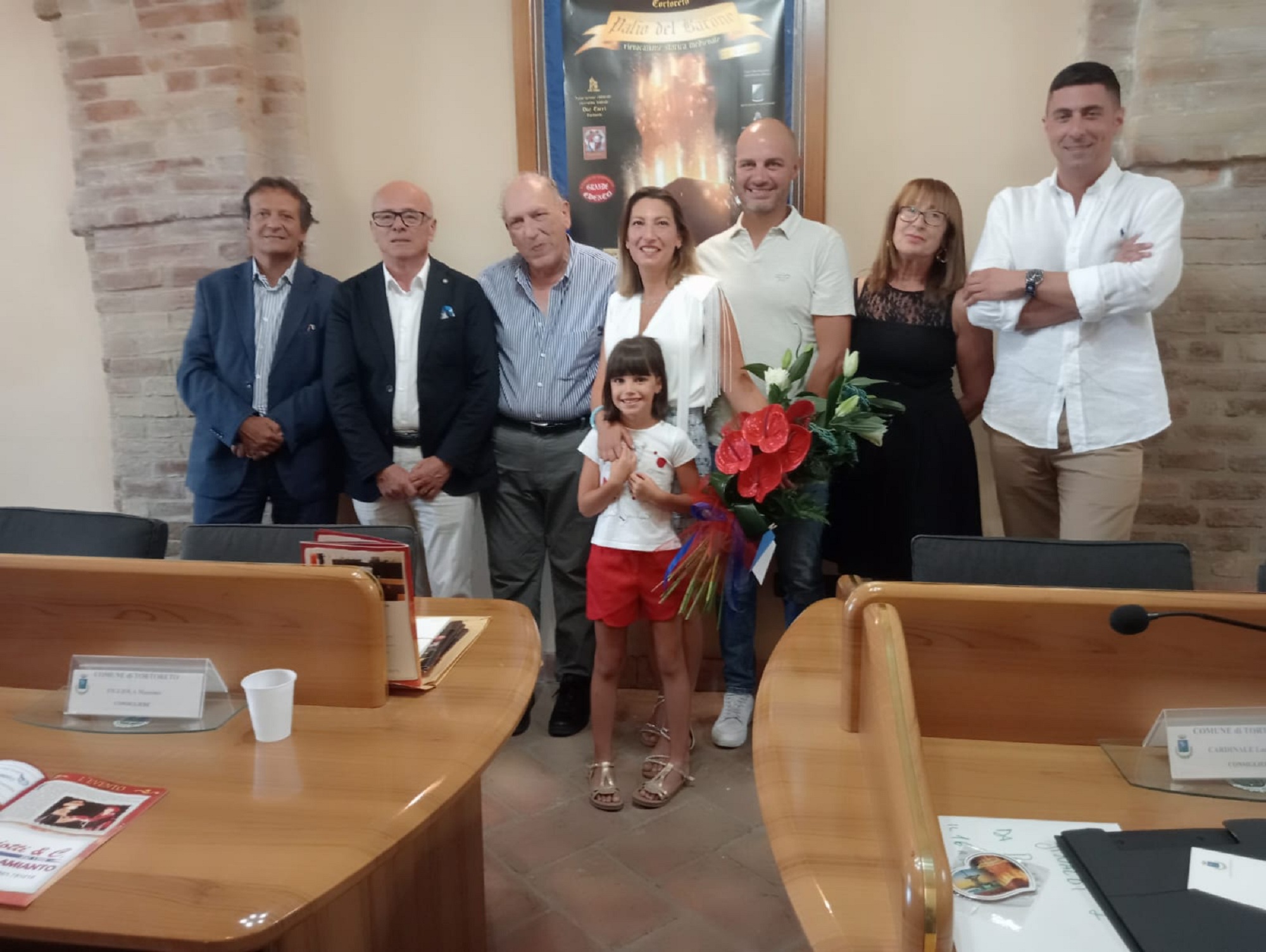 Tortoreto. Presentata la XXII edizione del Palio del Barone con l’importante novità di essere stato inserito nel progetto “Mappatura delle rievocazioni storiche” ideato e condotto dall’Istituto Centrale per il Patrimonio Immateriale (ICPI) del Ministero della Cultura, con la collaborazione della Società Italiana per la Museografia e i Beni DEA (SIMBDEA). L’evento si svolgerà martedì 22 luglio, ore 21,30, al centro del lido alla Rotonda Carducci e sabato 16 agosto, ore 20, nel cuore del centro storico nella parte alta. Ideato ed organizzato dall’Associazione culturale “Due Torri”, gode dell’alto patrocinio e sostegno finanziario del Comune di Tortoreto (come Grande Evento), Regione Abruzzo, Banca del Piceno ed i numerosissimi sponsor ed il patrocinio della Provincia di Teramo. Il drappo, realizzato dall’artista Carina Pieroni di San Benedetto del Tronto, verrà conteso tra le due contrade storiche rivali: Terranova in vantaggio di 11 drappi vinti contro i 10 di Terravecchia. Quest’anno, attraverso un apposito bando, sono state rinnovate le figure dei Baroni che usciranno come da tradizione dal palazzo storico della famiglia Liberati: i coniugi Andrea Maroni e Gabriella Imperato, lui di Offida e lei del Salento, dal 2012 hanno scelto di vivere a Tortoreto per formare la loro famiglia con le loro due figlie di 12 e 6 anni. Per la nuova coppia dei Baroni anche un piacevole omaggio floreale da parte di una precedente coppia: Gabriele Barcaroli e Lidia Ciccarelli che continuano a sostenere l’evento. Il ruolo della Gran Dama delle Chiavi custodite tra le braccia della più grande tra le dame, verrà interpretato dalla showgirl e conduttrice televisiva Matilde Brandi. La Gran Dama, per la prima volta, uscirà dalla sede comunale per ricevere dalle mani del Sindaco le chiavi della città. Mentre il ruolo del Notaio sarà affidato a Matteo Di Antonio. Durante la presentazione dell’evento hanno preso la parola: Ennio Guercioni, Presidente dell’Associazione “Due Torri”; Domenico Piccioni, Sindaco del Comune di Tortoreto; Giorgio Ripani, Assessore alla Cultura e Turismo e Umberto D’Annuntiis, Assessore della Regione Abruzzo. Tutti hanno ribadito l’importanza di un evento culturale di ampio respiro come quello del Palio che da ben 22 anni, tranne il periodo della pandemia, continua a resistere e proiettarsi verso il futuro con nuovi stimoli per i tanti turisti e residenti che partecipano alle due serate. Il Palio ricorda la visita alla Baronia di Tortoreto da parte del Vicario di Federico II inviato dall’Imperatore e i grandi festeggiamenti indetti per l’occasione dal Barone Roberto di Turturitus.