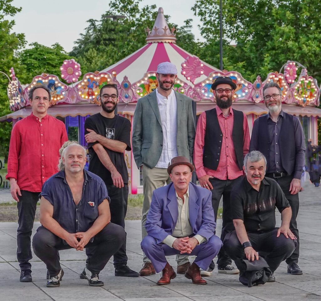Gli Amarcord sono una band bolognese attiva dal 1991 nata da un’idea di Igor Macchia, autore di testi, musica e arrangiamenti del complesso. Il gruppo, composto da otto elementi, porta sul palco il ritmo della musica balcanica e sonorità dixieland trascinando lo spettatore in un’avventura musicale che va dal jazz club newyorchese alle feste gitane. A Federico Fellini è ovviamente ispirato il nome ‘Amarcord’ (‘mi ricordo’ in dialetto romagnolo) ed è il titolo del celeberrimo e bellissimo film dove emerge quel contrasto tra malinconia e ironia che si ritrova nei testi e nelle musiche del gruppo.