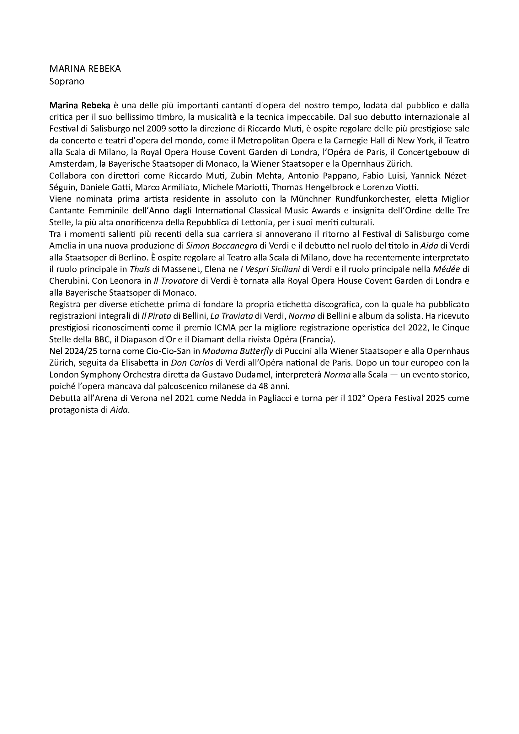 Wagner fu il suo biglietto da visita in Arena, nel gala 2021 che si concluse con sette bis, e ritorna con una primizia, il canto di Walther dai Meistersinger von Nürnberg, con cui conquista il cuore di Eva e il titolo di Maestro cantore (mai eseguito a Verona in lingua originale) e il toccante monologo finale di Lohengrin. Ai preludi delle rispettive opere si aggiunge la celebre aria ‘Dich teure Halle’ da Tannhäuser, interpretata da Marina Rebeka, soprano che torna in Arena dopo aver riportato con successo Norma alla Scala a quasi cinquant’anni dalle ultime recite.