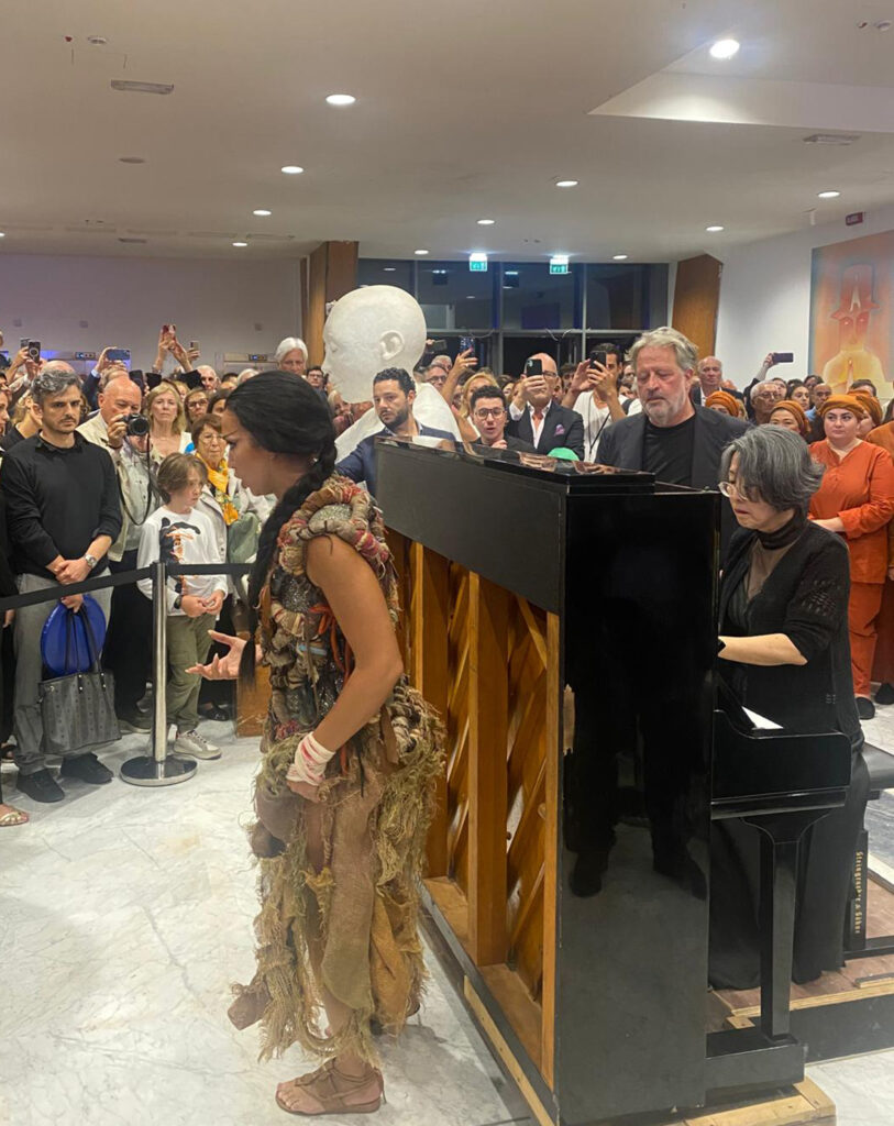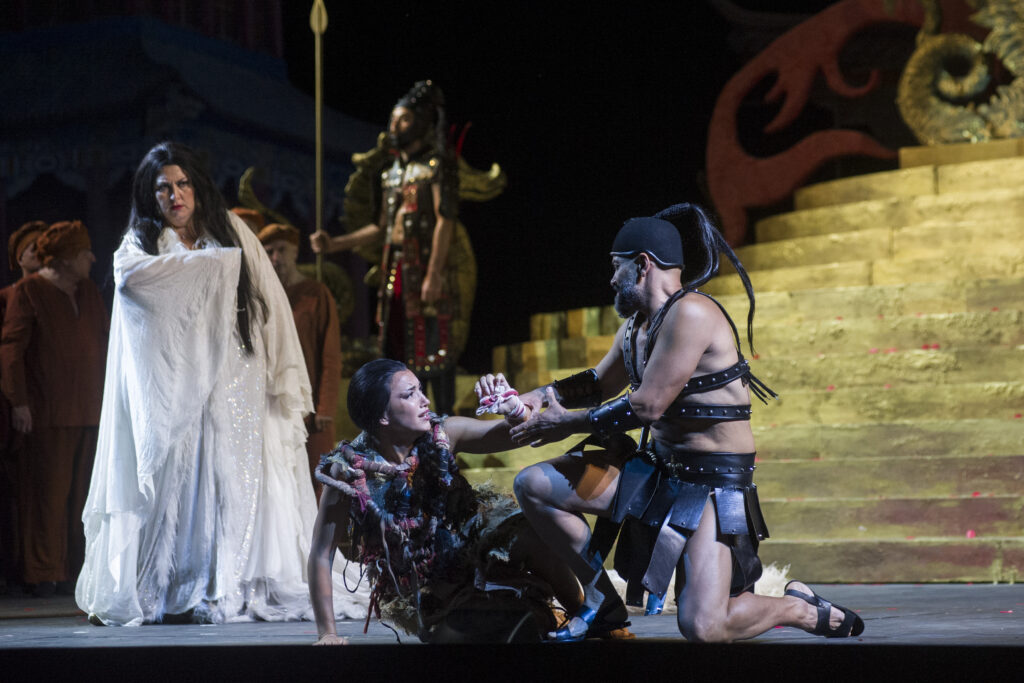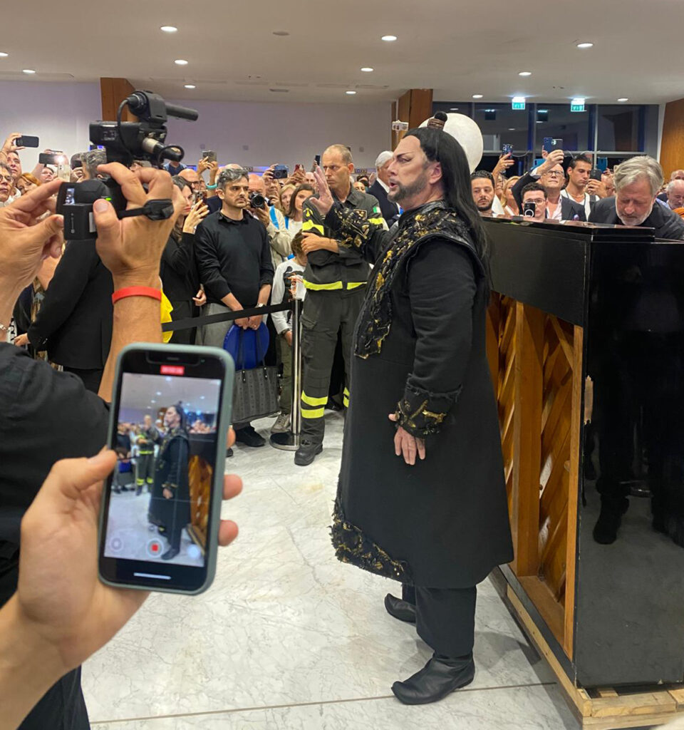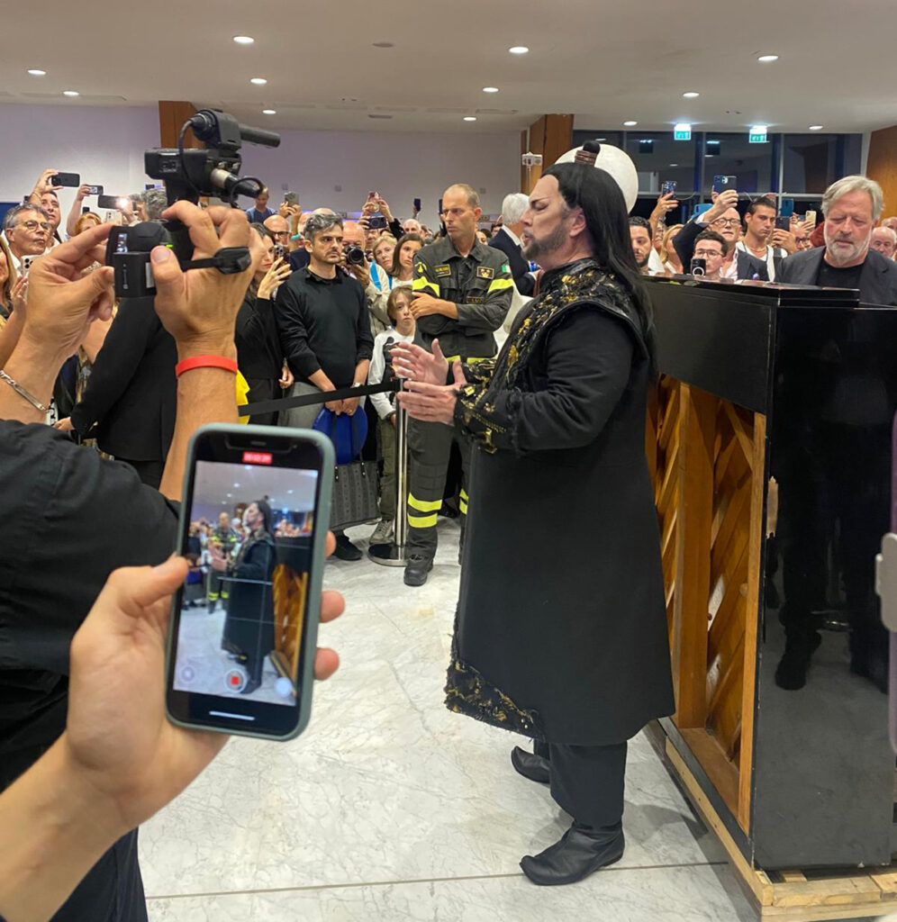 Trascorso il tempo dell’intervallo e un’ulteriore attesa nella speranza che il tempo volgesse al meglio, la Fondazione Festival Pucciniano – grazie allo spirito di collaborazione di tutto il cast e alla disponibilità della maestra collaboratrice Michi Tagasaki – ha deciso di proseguire l’esecuzione del terzo atto (seppur in versione ridotta) nel foyer del Gran Teatro, con il Coro e i protagonisti accompagnati con il solo pianoforte per ringraziare il pubblico rimasto in attesa di sviluppi del meteo. Così il tenore Gregory Kunde (Calaf) ha eseguito l’atteso “Nessun dorma”, il soprano Carolina López Moreno come Liù il suo “Tu che di gel dei cinta” mentre il soprano Anna Pirozzi come Turandot ha regalato insieme a Kunde il duetto finale, quindi il coro conclusivo.