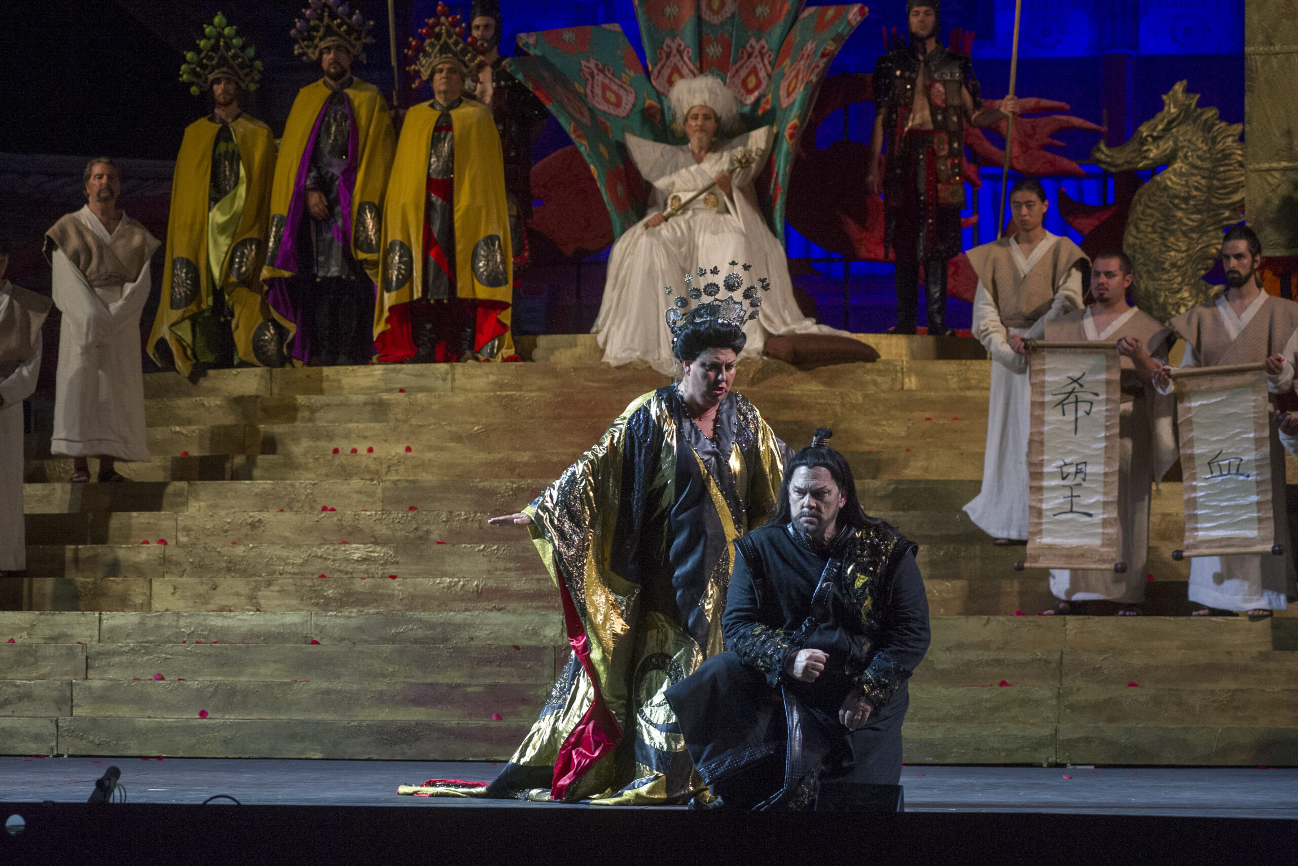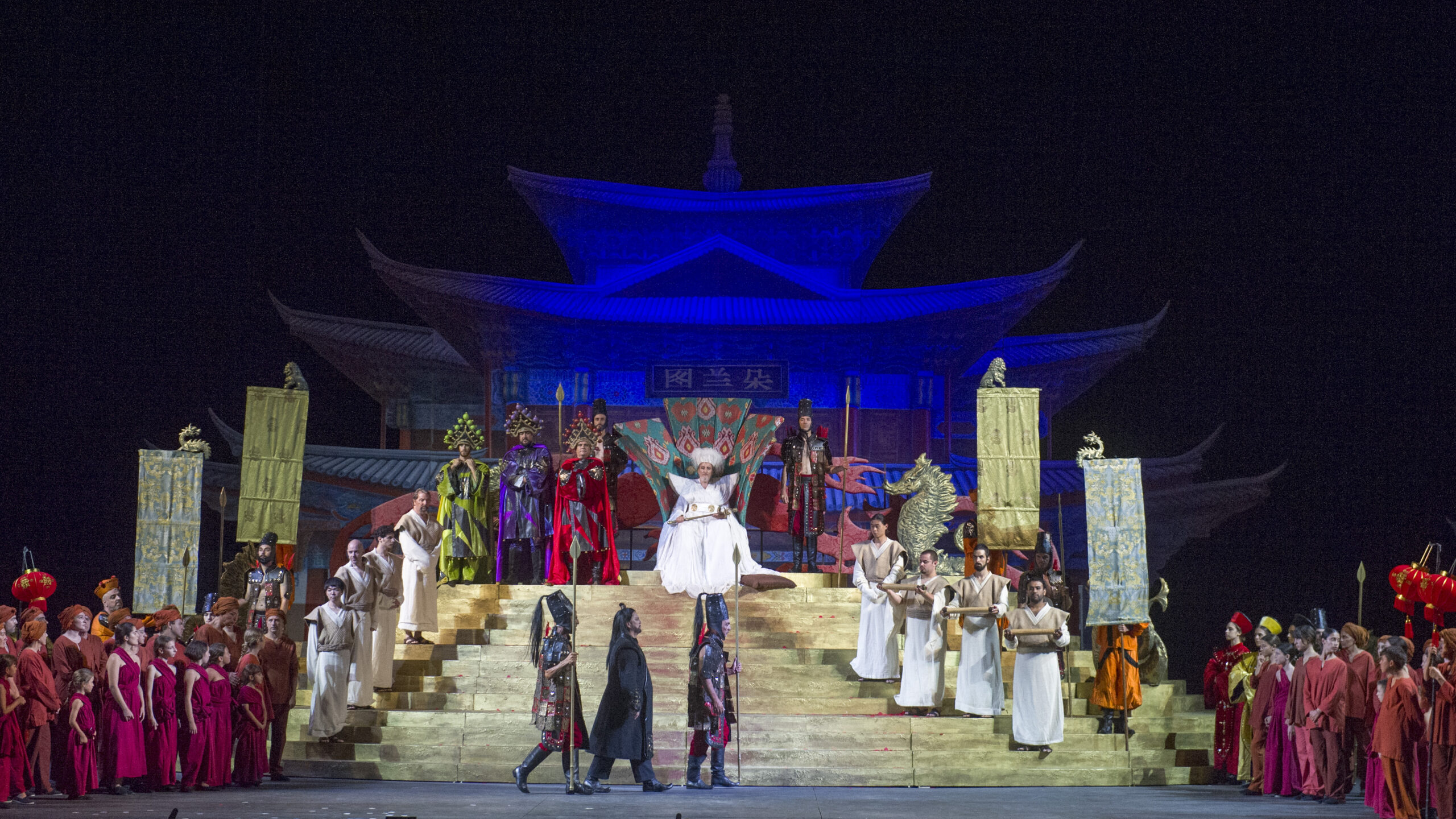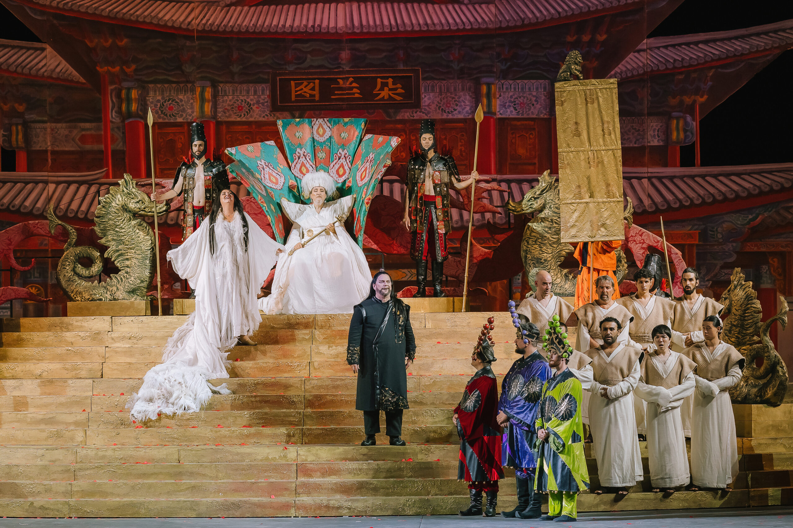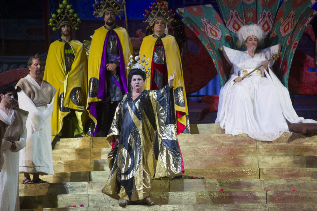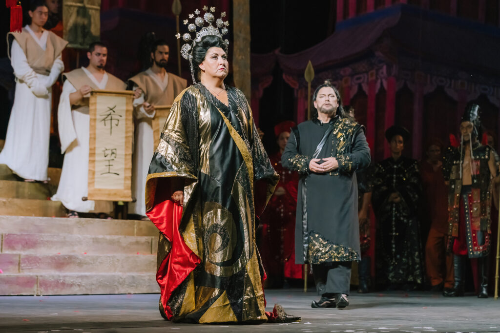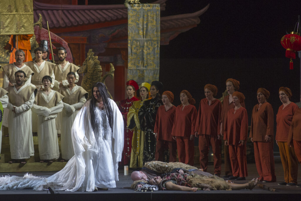 Turandot tornerà in scena il 2, 14 e 22 agosto e il 5 settembre sempre nell’allestimento del 2017 con la regia di Alfonso Signorini, le scene sono di Carla Tolomeo e i costumi di Fausto Puglisi. La direzione musicale è sempre affidata a Palumbo. Come interpreti ci saranno Turandot Olga Maslova (02 e 14/08) e Courtney Ann Mills (22/08 e 05/09); Calaf sarà sostenuto da Gregory Kunde (02/08), Dario Di Vietri (14/08) e Yusif Eyvazov (22/08 e 05/09). Nei panni di Liù si alterneranno Rosa Feola (2/08), Alina Tkachuk (14/08), Carolina Lopez Moreno (22/08) ed Elisa Balbo (05/09); Timur quindi saranno Michele Pertusi (02/08); Vittorio De Campo (14, 22/08 e 05/09). Completano il cast Massimiliano Pisapia (Altoum), Sergio Vitale (25/07; 02/08 e 14/08) e Stefano Marchisio (22/08 e 05/09) (Ping), Andrea Tanzillo (Pang), Tiziano Barontini (Pong), Luca Dall’Amico (Un mandarino), Andrea Volpini (Il principino di Persia), Irene Celle e Maria Salvini (Ancelle).