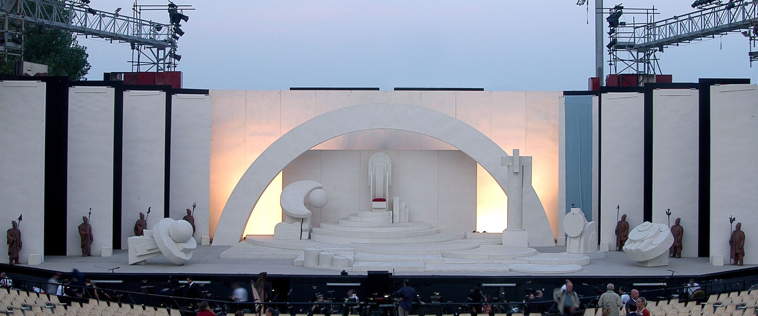 Questo quarto weekend è arricchito dall’inaugurazione di una mostra che lega la storia del festival a quella dei capolavori di Puccini, ma soprattutto apre il percorso verso il centenario dal debutto di Turandot che sarà il titolo inaugurale del 2026. Giovedì 7 agosto alle ore 19.00, nel Giardino del Gran Teatro all’aperto Giacomo Puccini di Torre del Lago – Viareggio, il sindaco Giorgio Del Ghingaro e il presidente della Fondazione Festival Pucciniano inaugurano la mostra “…a riveder le stelle. Pietro Cascella tra scultura, scenografia e memori del teatro”, dedicata agli elementi scenici disegnati da lo scultore pescarese Pietro Cascella (1921-2008) per lo storico allestimento di Turandot del 2004, in occasione della 50ª edizione del Festival e dei trent’anni dalla scoperta del celebre esercito cinese di terracotta. Il progetto espositivo – curato da Valeria Pardini – presenta alcuni tra gli elementi scultorei concepiti da Cascella per il grande palcoscenico di Torre del Lago: architetture totemiche, forme essenziali che nel 2004 trasformarono la scena in uno spazio sospeso e rituale, profondamente coerente con la forza simbolica della partitura pucciniana. Quelle stesse opere tornano oggi a vivere nel Giardino del Gran Teatro che ospita già alcuni elementi scenici ideati da altri artisti, restituite alla fruizione pubblica come installazione permanente a cielo aperto, in dialogo con il paesaggio naturale e la memoria storica del Festival. Il titolo scelto per la mostra, “…a riveder le stelle”, richiama il celebre verso che chiude l’Inferno dantesco e che accompagna da sempre il pensiero visivo di Cascella, evocando idealmente il gesto del ritorno alla luce. Le sculture, sopravvissute al tempo e ora restaurate, diventano così presenze vive e testimoni di un teatro che continua a raccontarsi attraverso l’arte e la materia, a partire dal luogo che più di ogni altro conserva l’impronta di Giacomo Puccini. La mostra sarà visitabile gratuitamente nel Parco della Musica durante il Festival.