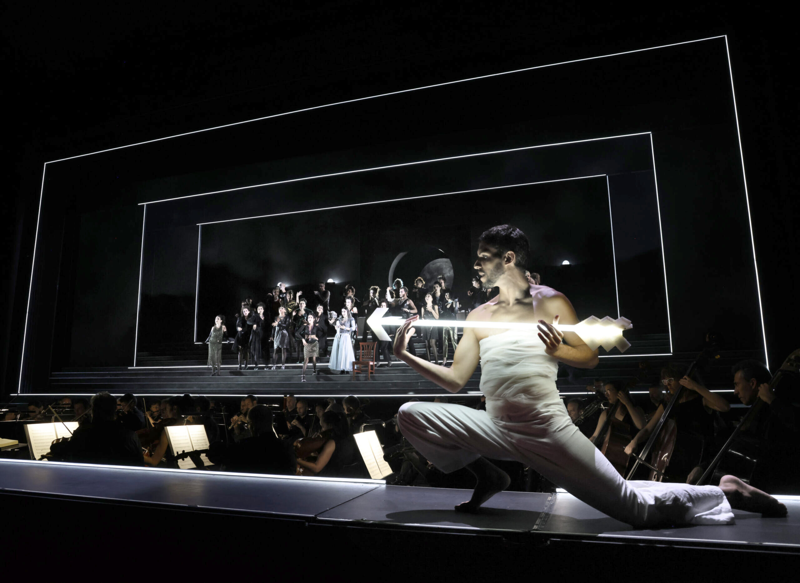 Per la lettura articolata attraverso il rapporto simbiotico fra concezione musicale e teatrale, con un’unità di intenti e una qualità protese, secondo il principio enunciato dal fondatore del Festival Gianfranco Mariotti, non alla lusinga rassicurante, ma alla riflessione e alla discussione sull’opera stessa.