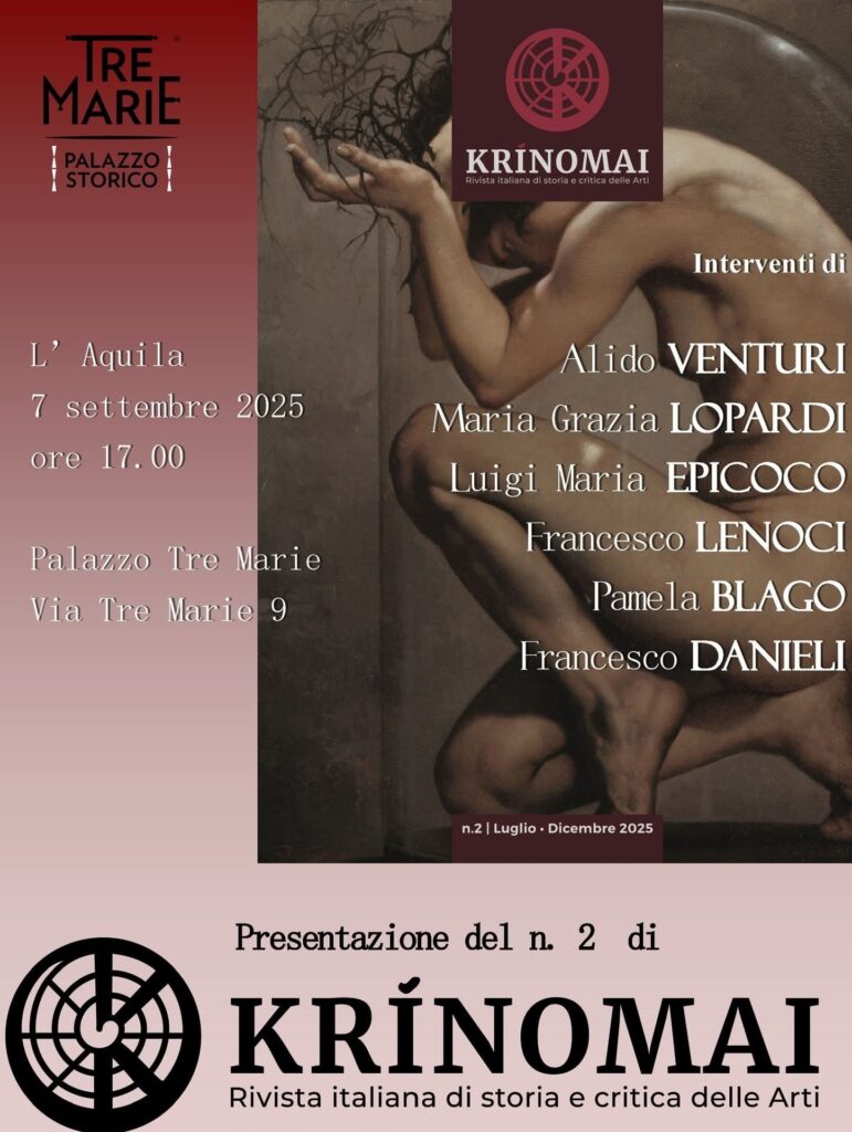 Alle ore 17.00 sarà presentato il secondo numero di “Krínomai – Rivista italiana di storia e critica delle Arti”.