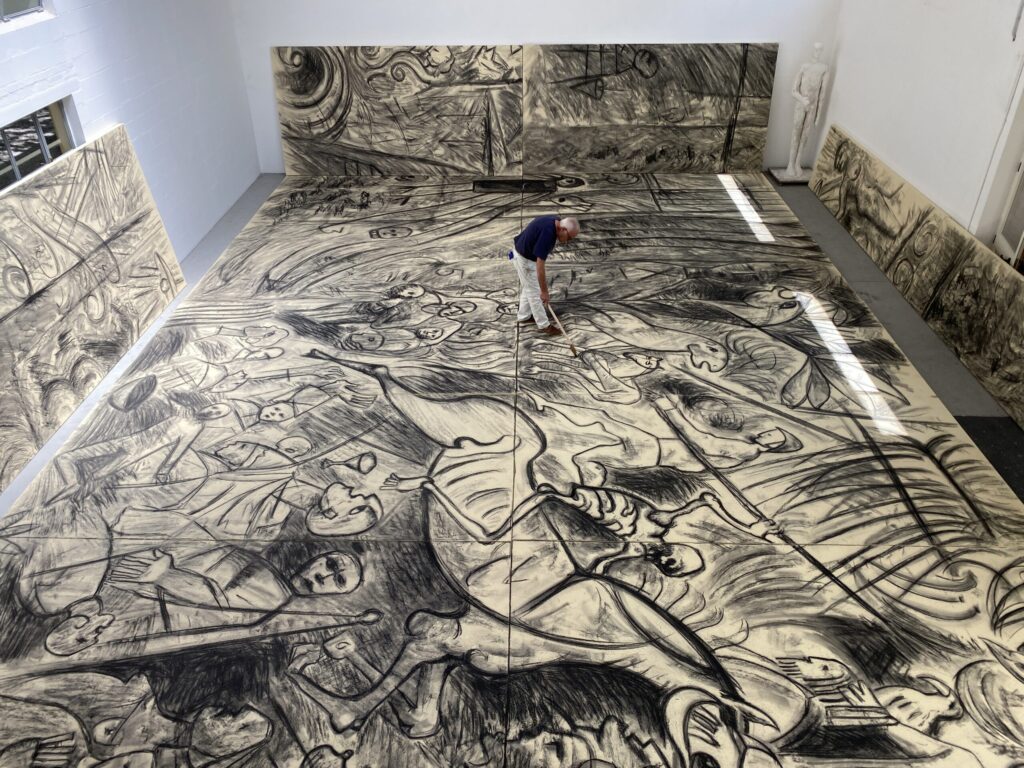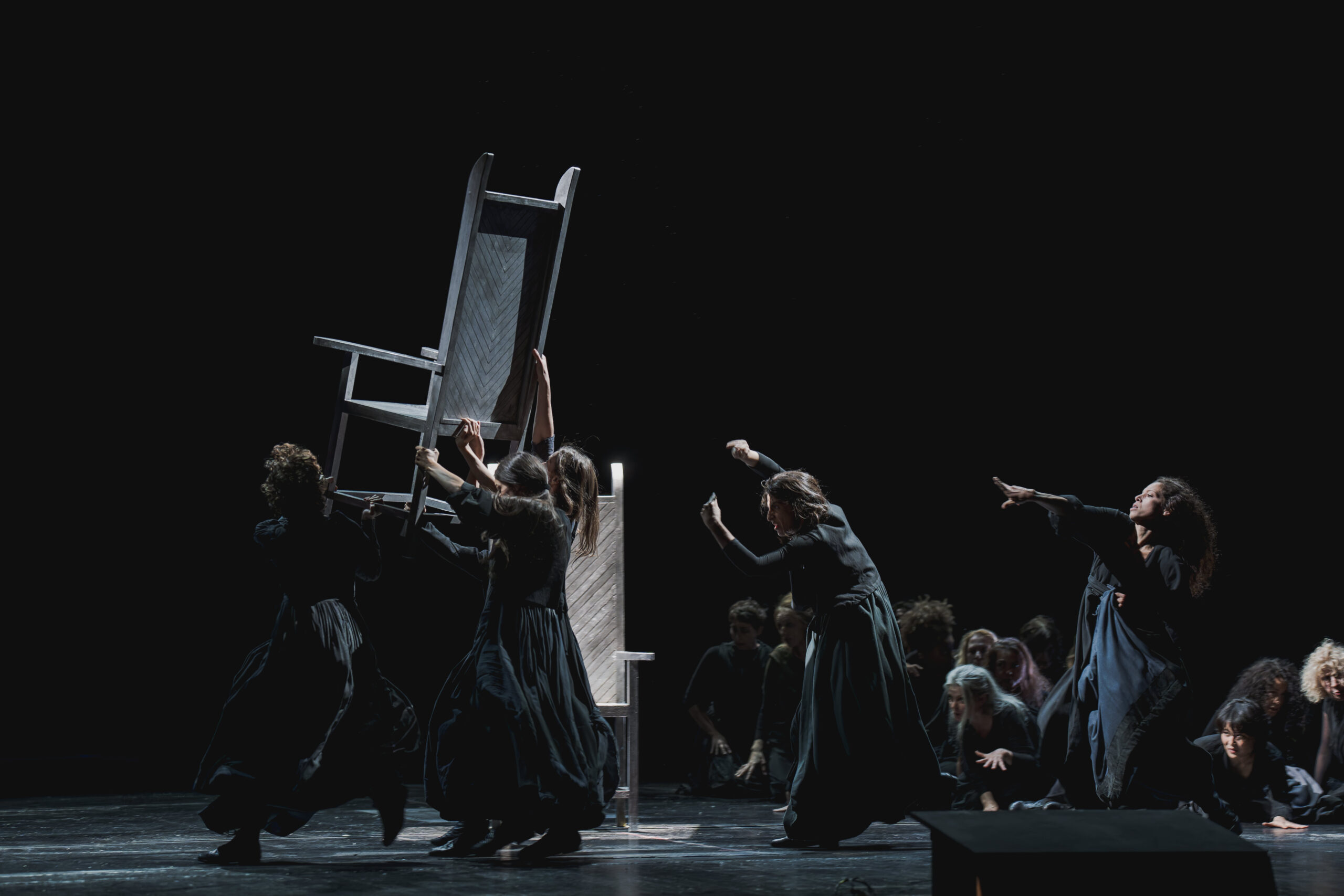 Lo spazio e la regia dello spettacolo sono curati da Mario Martone, le scene sono firmate da Mimmo Paladinoche realizza per il Macbeth e per il Maggio, anche una vera opera d’arte: il maestoso, enorme sipario dipinto su legno ispirato all’affresco “Il Trionfo della morte” di palazzo Abattellis a Palermo.