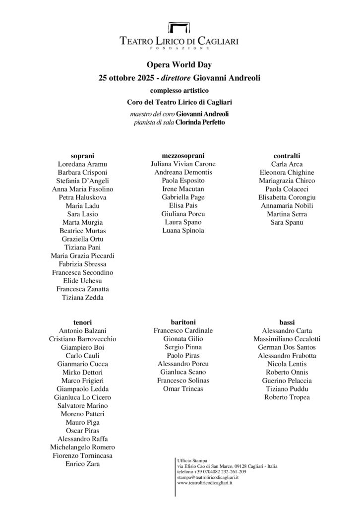 Teatro Lirico di Cagliari, via Efisio Cao di San Marco, 09128 Cagliari – Italia telefono +39 0704082209 – stampa@teatroliricodicagliari.it – www.teatroliricodicagliari.it