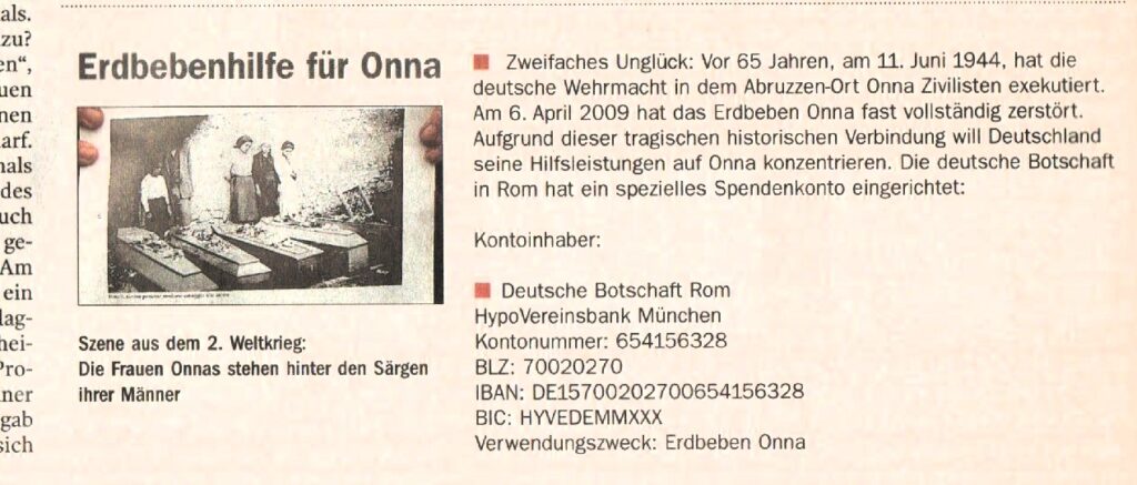 Occorre ricordare che Paul Badde aveva raggiunto la fama mondiale con la pubblicazione di «Yossl Rakover si rivolge a Dio”, racconto drammatico di un ebreo lituano nel ghetto di Varsavia che chiamò in causa Dio e il suo silenzio di fronte agli orrori del nazismo. Una storia che Badde aveva riscoperto, studiato e tradotto. In Italia il piccolo libro è stato pubblicato dall’editore Adelphi, raggiungendo 13 edizioni. Proprio a questa sua particolare sensibilità rispetto ai riflessi del nazismo lo portò ad interessarsi della tragedia di Onna, all’indomani del terremoto che colpì l’Aquila il 6 aprile 2006, distruggendo il vicino villaggio, di cui voglio offrire un ricordo personale.
