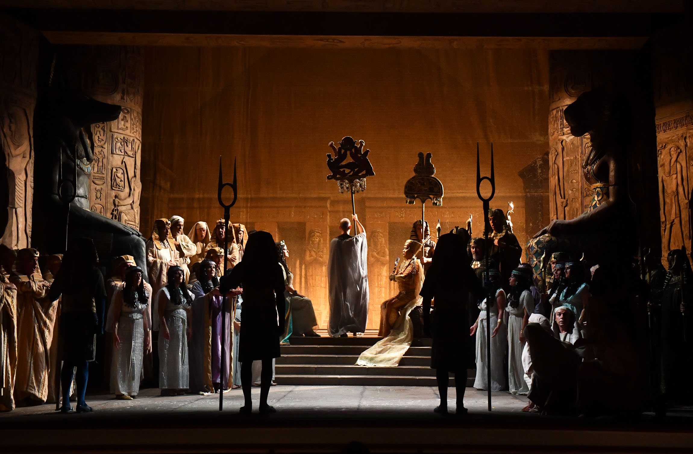 Aida, opera in quattro atti su libretto di Antonio Ghislanzoni, debutta al Teatro Giuseppe Verdi di Busseto venerdì 2 ottobre alle ore 20:00 (recite venerdì 9 ore 20:00, venerdì 16 ore 20:00, domenica 25 ottobre ore 15:30) nell’allestimento creato da Franco Zeffirelli nel Centenario Verdiano 2001, con i costumi di Anna Anni ripresi da Lorena Marin, le luci di Andrea Borelli, le coreografie di Luc Bouy riprese da Gaetano Petrosino. Giuseppe Mengoli dirige l’opera per la prima volta sul podio della Filarmonica Arturo Toscanini e del Coro del Teatro Regio di Parma, preparato da Martino Faggiani.