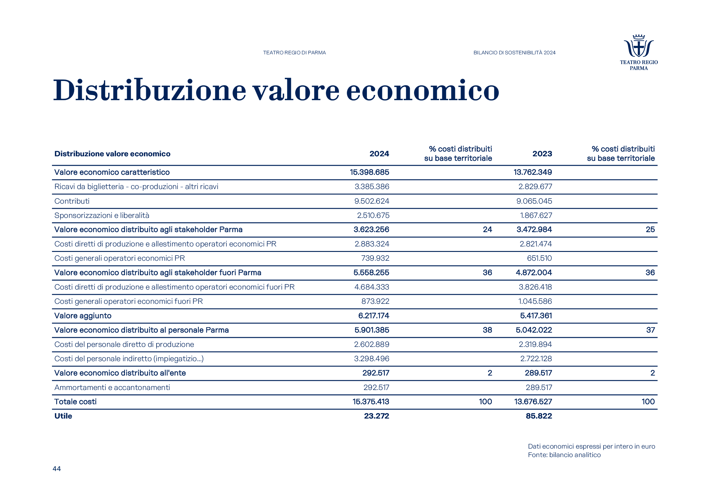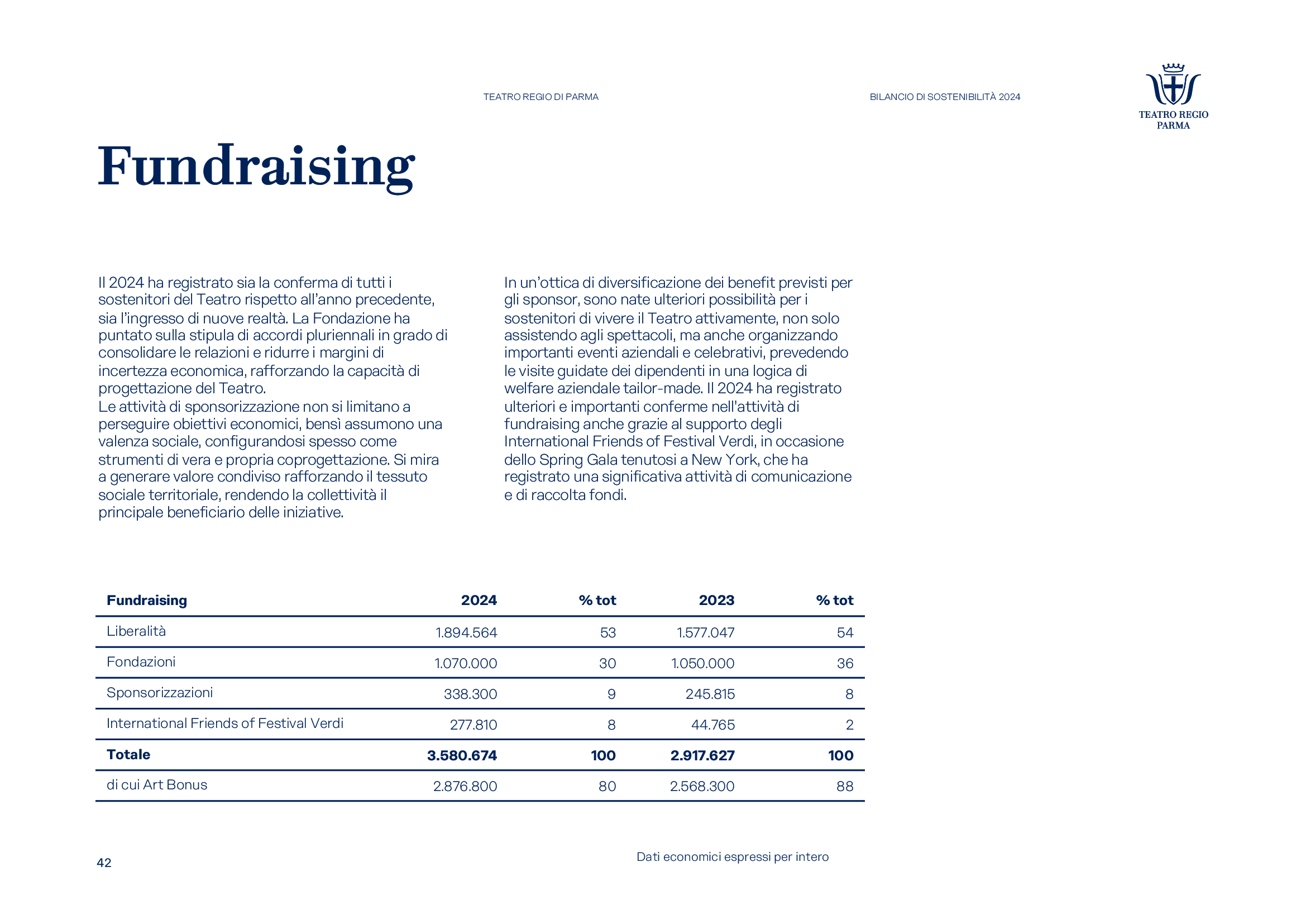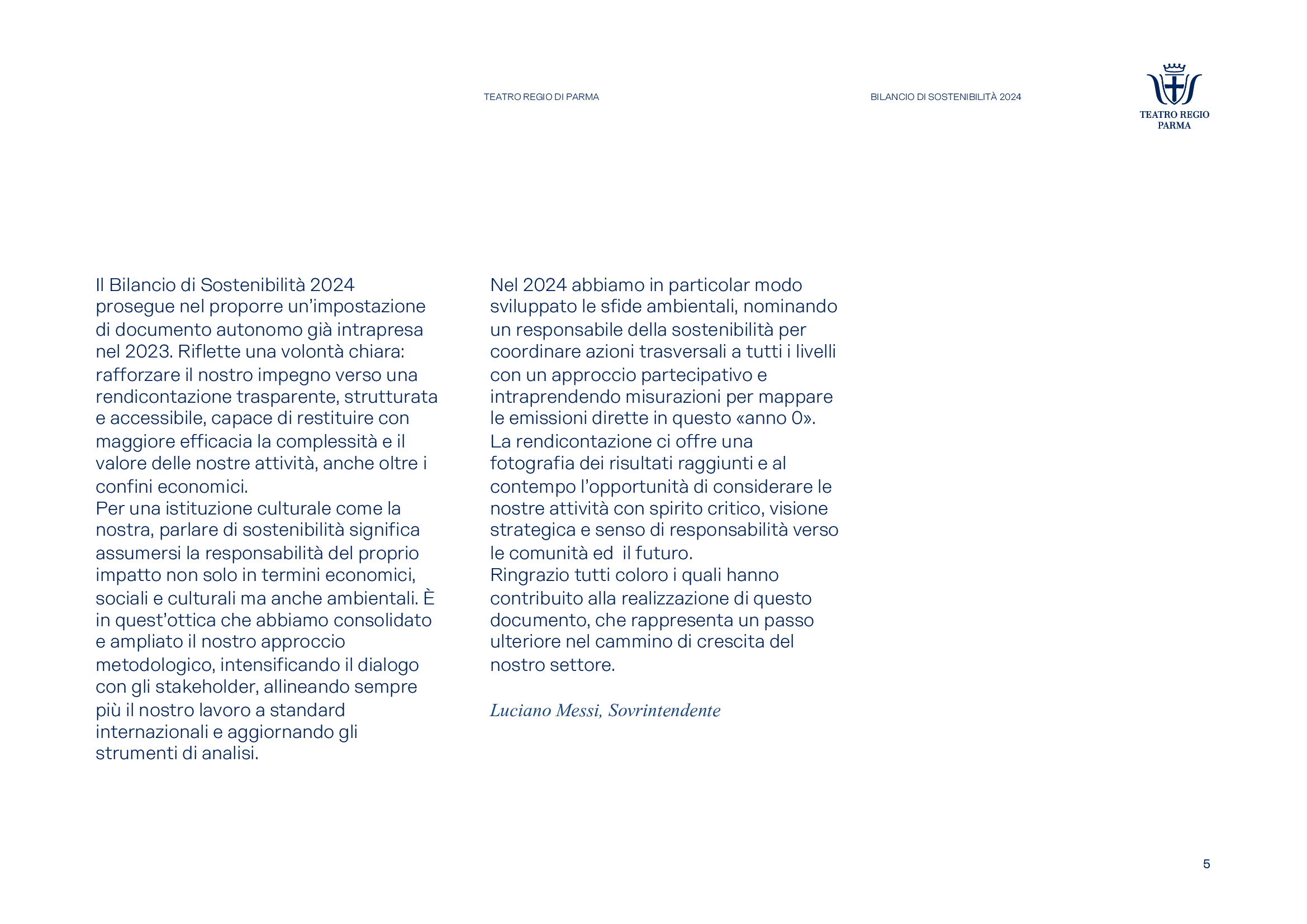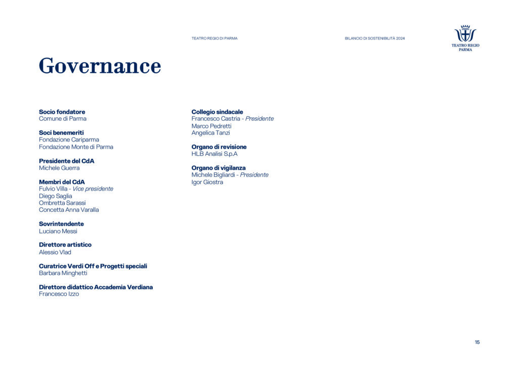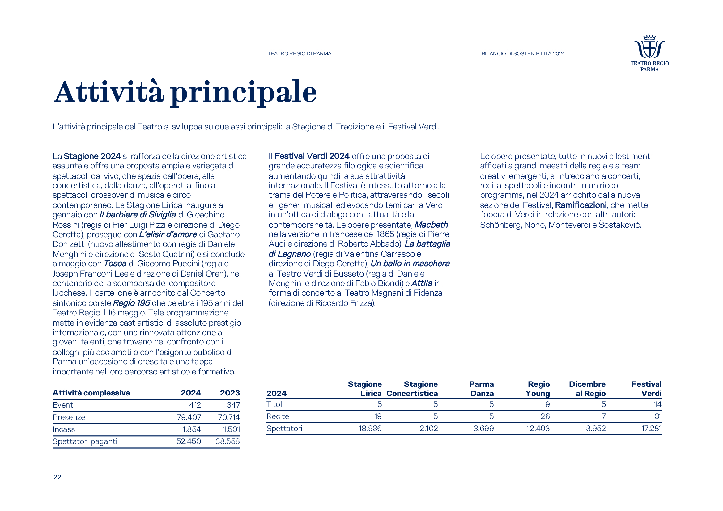 BILANCIO DI SOSTENIBILITÀ DEL TEATRO REGIO DI PARMA 2024