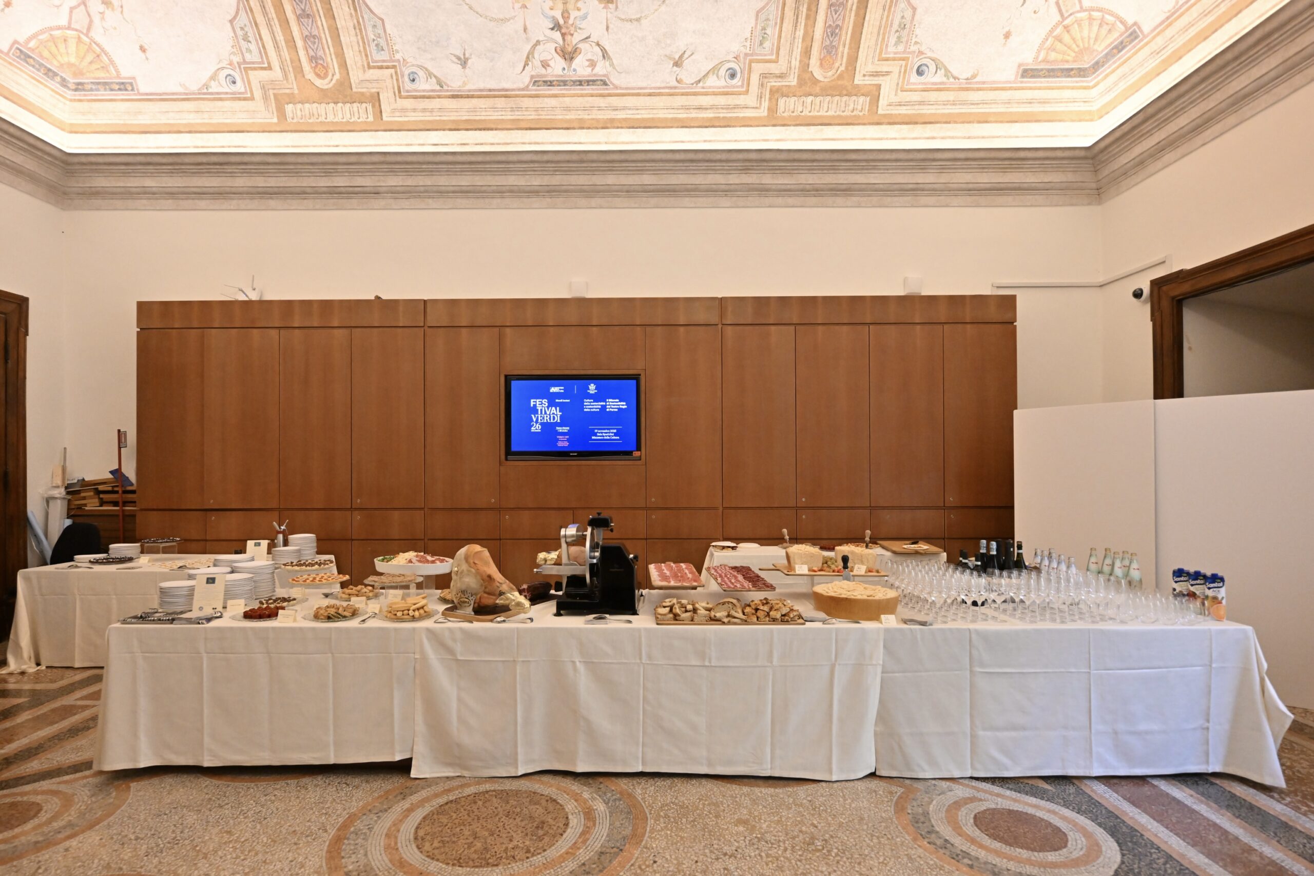 Al termine della conferenza stampa è stato servito un buffet con i prodotti delle 6 filiere di Parma Food Valley, coordinato da Parma Alimentare e con il supporto degli chef di Parma Quality Restaurants.