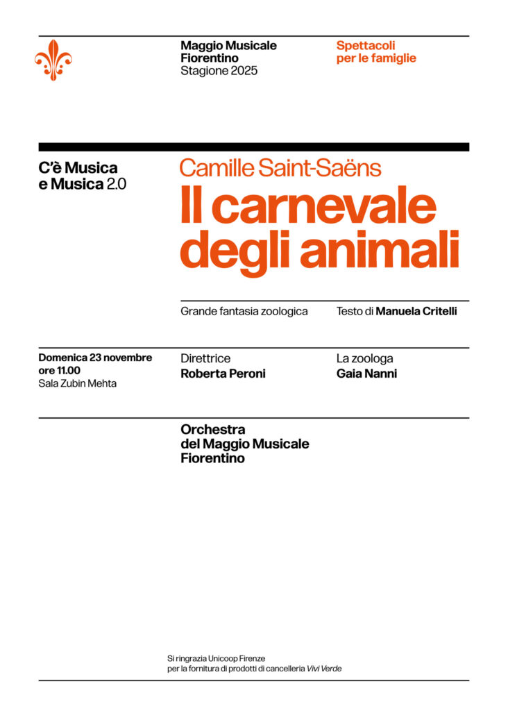 In programma – domenica 23 novembre 2025 alle ore 11, in Sala Zubin Mehta – “Il carnevale degli animali” di Camille Saint-Saëns.