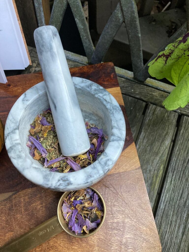 Mia nonna è stata la mia più grande influenza, sempre pronta a insegnarmi “i vecchi metodi”. Anche la mia bisnonna, che ho avuto la fortuna di conoscere per sedici anni, consolidava quegli insegnamenti. Entrambe parlavano delle erbe come di guaritori viventi, doni tramandati nella nostra linea familiare.
