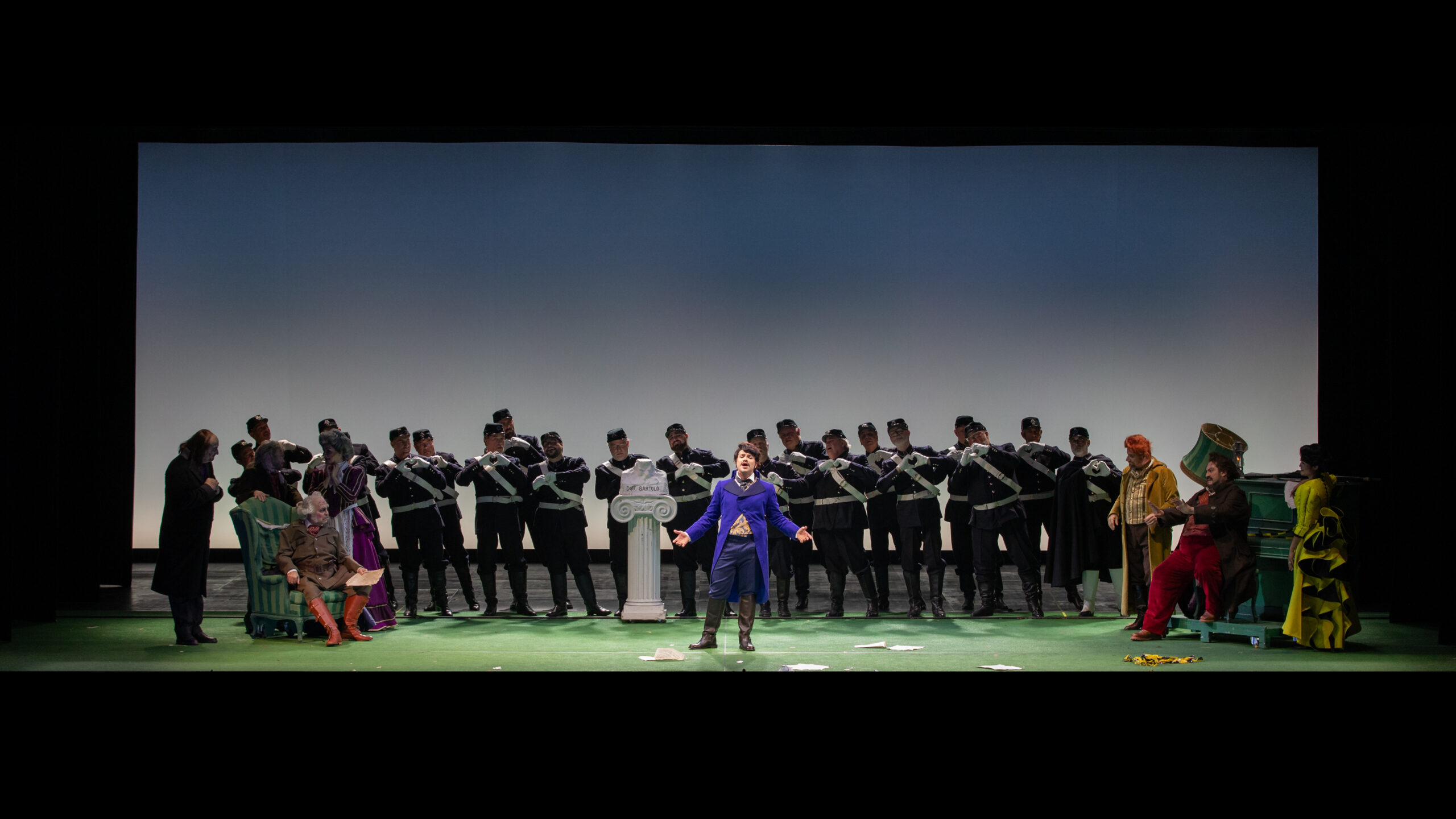 «Rossini porta all’estremo i conflitti della commedia borghese: amore contro egoismo, libertà contro prigionia – racconta Grazzini – La follia qui non è malattia: è il vortice di situazioni imprevedibili in cui i personaggi vengono risucchiati. Il potere è incarnato da Bartolo, perfetto borghese: conservatore, utilitarista, padrone degli spazi e delle regole. Il suo mondo perfetto va progressivamente in frantumi. Il denaro, come spesso accade, muove tutto. La dote di Rosina non è soltanto un elemento narrativo: è la manifestazione di un pensiero borghese che trasforma anche l’amore in un calcolo costi-benefici. Il tempo è quello del gioco teatrale, tutto si accelera, slitta, si deforma. Figaro lo attraversa come un personaggio ‘ibrido’, capace di muoversi dentro e fuori la storia. La comicità poi è tutta una questione di timing: Rossini riesce ad infonderla nella musica in un modo geniale. Alla regia spetta il compito di entrare in dialogo con essa. […] Uno degli aspetti fondamentali della nostra lettura è quello metateatrale perché nel capolavoro rossiniano esistono troppi riferimenti metateatrali per essere ignorati. Basti pensare a quante volte è citata dai personaggi l’opera stessa, L’inutil precauzione».