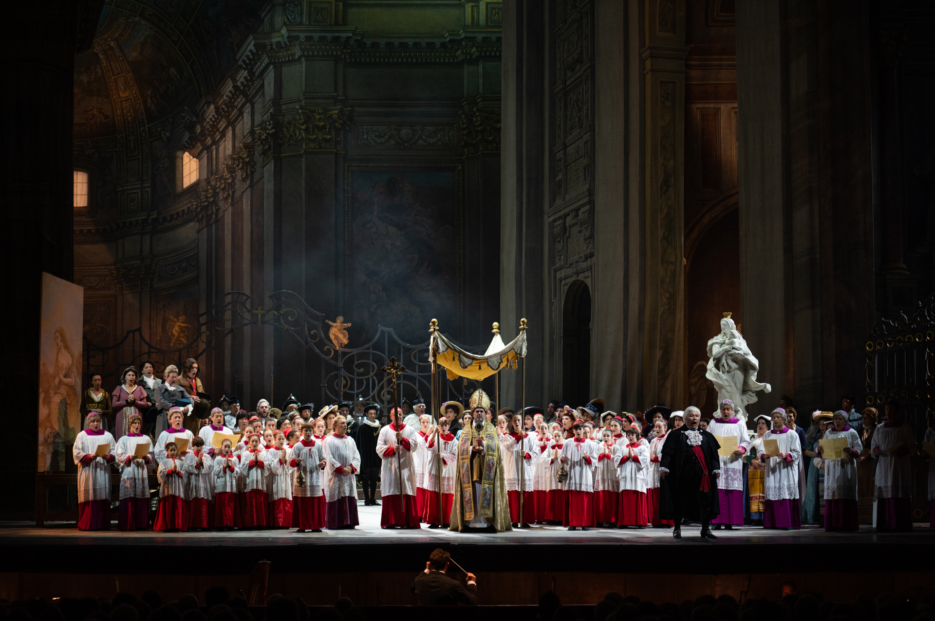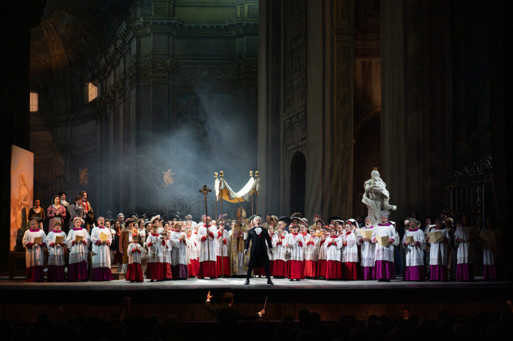 Tosca, melodramma in tre atti di Giacomo Puccini, su libretto di Giuseppe Giacosa e Luigi Illica, dal dramma omonimo di Victorien Sardou, andrà in scena nell’allestimento storico del Teatro dell’Opera di Roma, che ricostruisce la produzione del debutto del 1900, recentemente riproposta e trasmessa anche in televisione, restituendo al pubblico l’impianto visivo e drammaturgico originario. Sul podio dell’Orchestra del Teatro Carlo Felice salirà Giuseppe Finzimentre la regia è di Alessandro Talevi; scene e costumi sono appunto quelli storici disegnati da Adolf Hohenstein. Il cast riunisce interpreti di grande rilievo: Anastasia Bartoli, Carmen Giannattasio e Valentina Boi si alterneranno come Floria Tosca; Giorgio Berrugi e Carlo Ventre interpreteranno Mario Cavaradossi; Lucas Meachem e Ivan Inverardivestiranno i panni del Barone Scarpia. Completano il cast Luca Tittoto e John Paul Huckle (Angelotti), Fabio Maria Capitanucci (Sagrestano), Manuel Pierattelli (Spoletta) e Franco Cerri (Sciarrone). Il Coro genovese è preparato da Claudio Marino Moretti, mentre il Coro di voci bianche da Gino Tanasini.