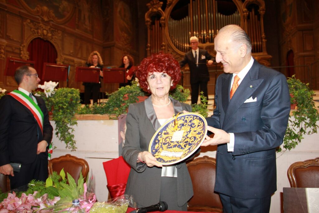 – Giorgio Girelli porge il dono del Conservatorio alla ministra Fedeli