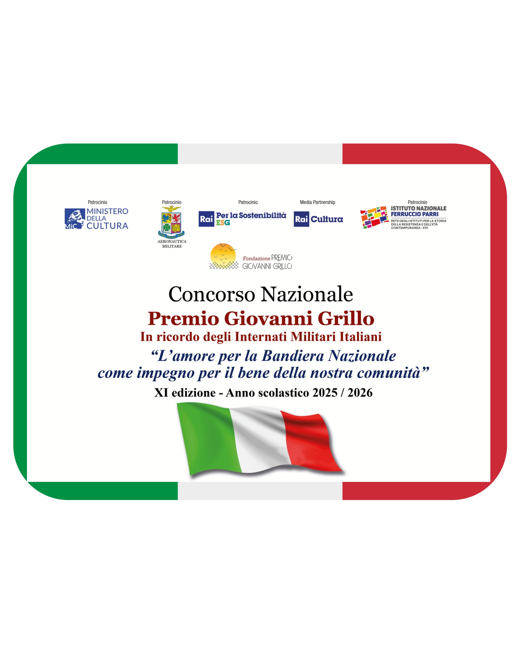 Si svolgerà il prossimo 26 gennaio, nella Sala della Regina della Camera dei deputati, con inizio alle ore 15.00, la cerimonia di consegna dell’undicesimo Premio Nazionale Giovanni Grillo in ricordo degli Internati Militari Italiani, dal titolo “L’amore per la Bandiera Nazionale come impegno per il bene della nostra comunità”. Detto Premio è stato istituito nel 2016 dall’omonima Fondazione in collaborazione con il Ministero dell’Istruzione e del Merito e gode della Media Partnership di Rai Cultura, oltre che del patrocinio morale e gratuito di Rai Per la Sostenibilità ESG, dell’Aeronautica Militare, del Ministero della Cultura e dell’Istituto Nazionale Ferrucci Parri.