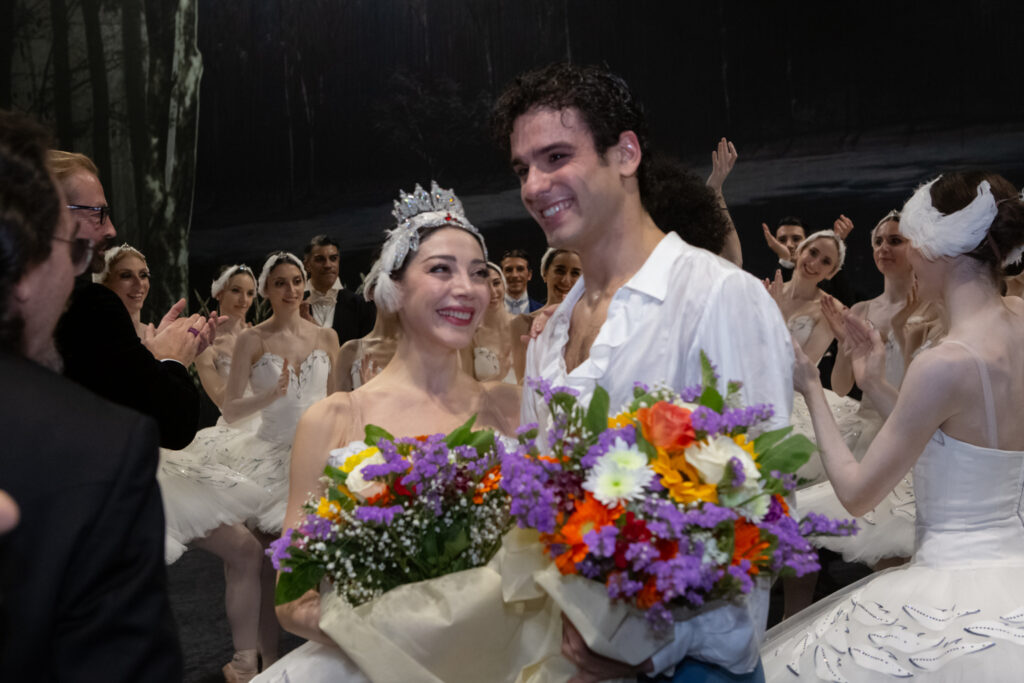Applausi a scena aperta al termine di quasi ogni quadro hanno scandito la serata, trasformatasi in un vero e proprio tributo all’eccellenza del Corpo di ballo che, sotto la guida di Colau, ha mostrato una solida coesione e maturità. Un’autentica ovazione è stata riservata alla coppia di protagonisti: la straordinaria Maia Makhateli, stella del Dutch National Ballet, ha offerto un’interpretazione di Odette/Odile tecnicamente impeccabile e commovente. Accanto a lei, il beniamino di casa Andrea Sarri, palermitano e premier danseur dell’Opéra di Parigi, ha letteralmente infiammato la platea, con una prova di grande vigore e sensibilità interpretativa, confermando il legame speciale che lo unisce alla sua città.