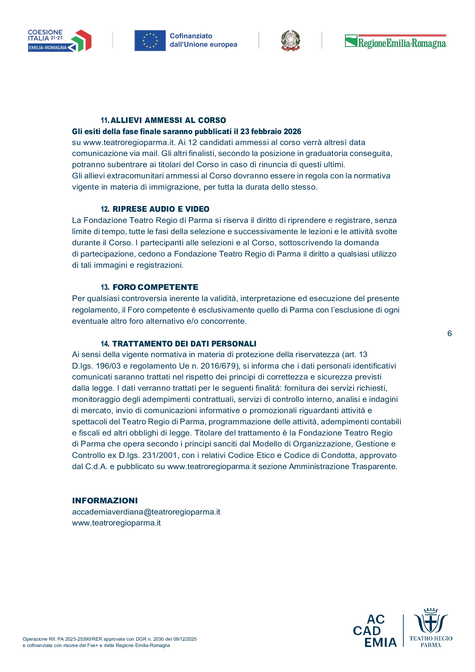 Il regolamento completo della IX edizione di Accademia Verdiana è disponibile su teatroregioparma.it. Per informazioni: accademiaverdiana@teatroregiodiparma.it.