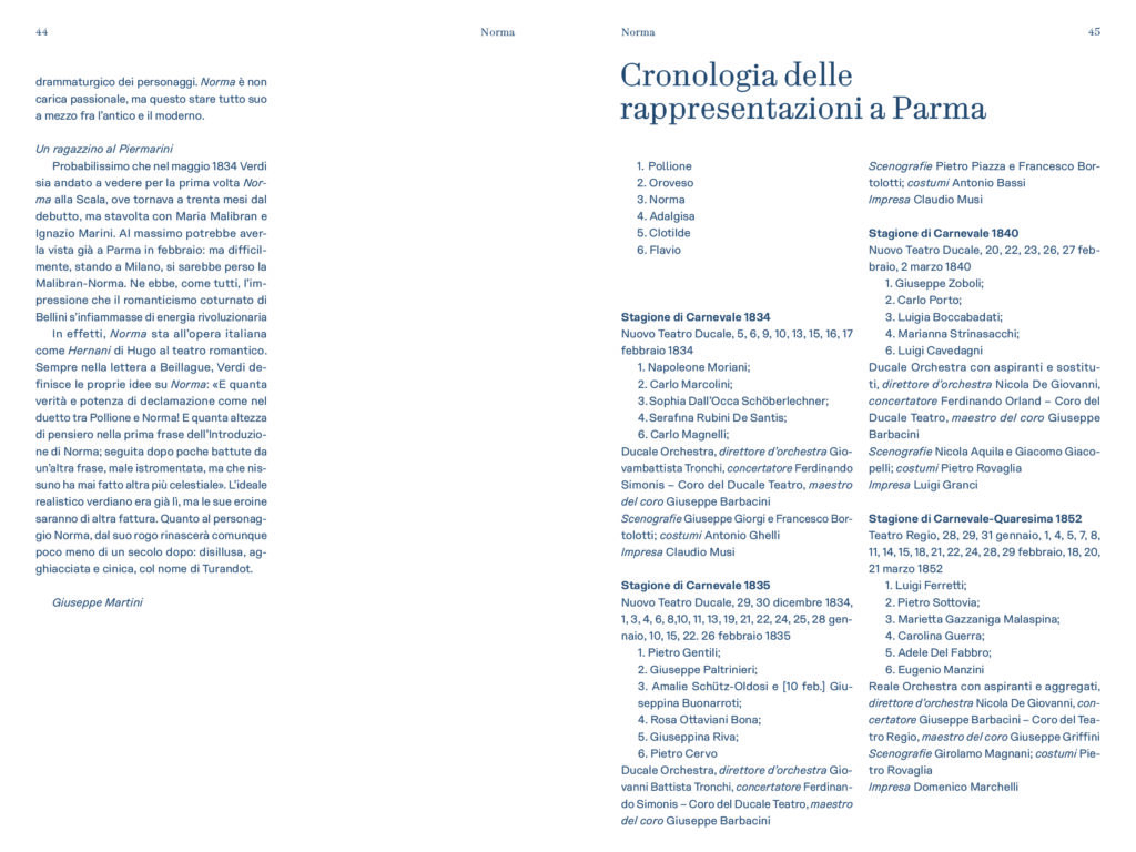 Renato Palumbo dirige l’opera sul podio dell’Orchestra Filarmonica Italiana e del Coro del Teatro Regio di Parma, preparato da Martino Faggiani. Interpreti Dmitry Korchak (Pollione), Carlo Lepore (Oroveso), Vasilisa Berzhanskaya (Norma), Maria Laura Iacobellis (Adalgisa), Alessandra Della Croce (Clotilde), Francesco Congiu* (Flavio) *già allievo di Accademia Verdiana.